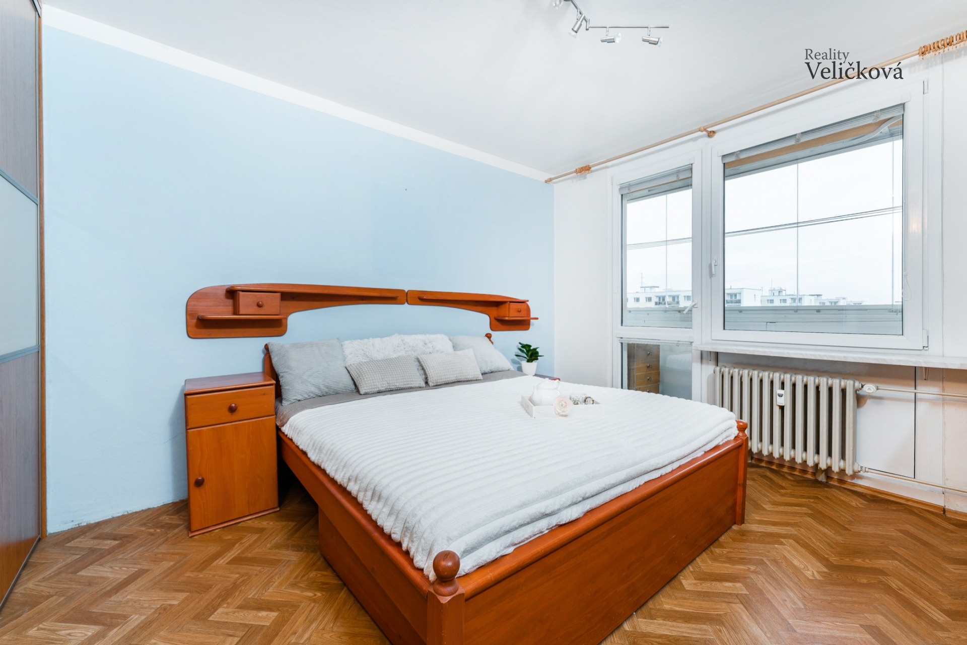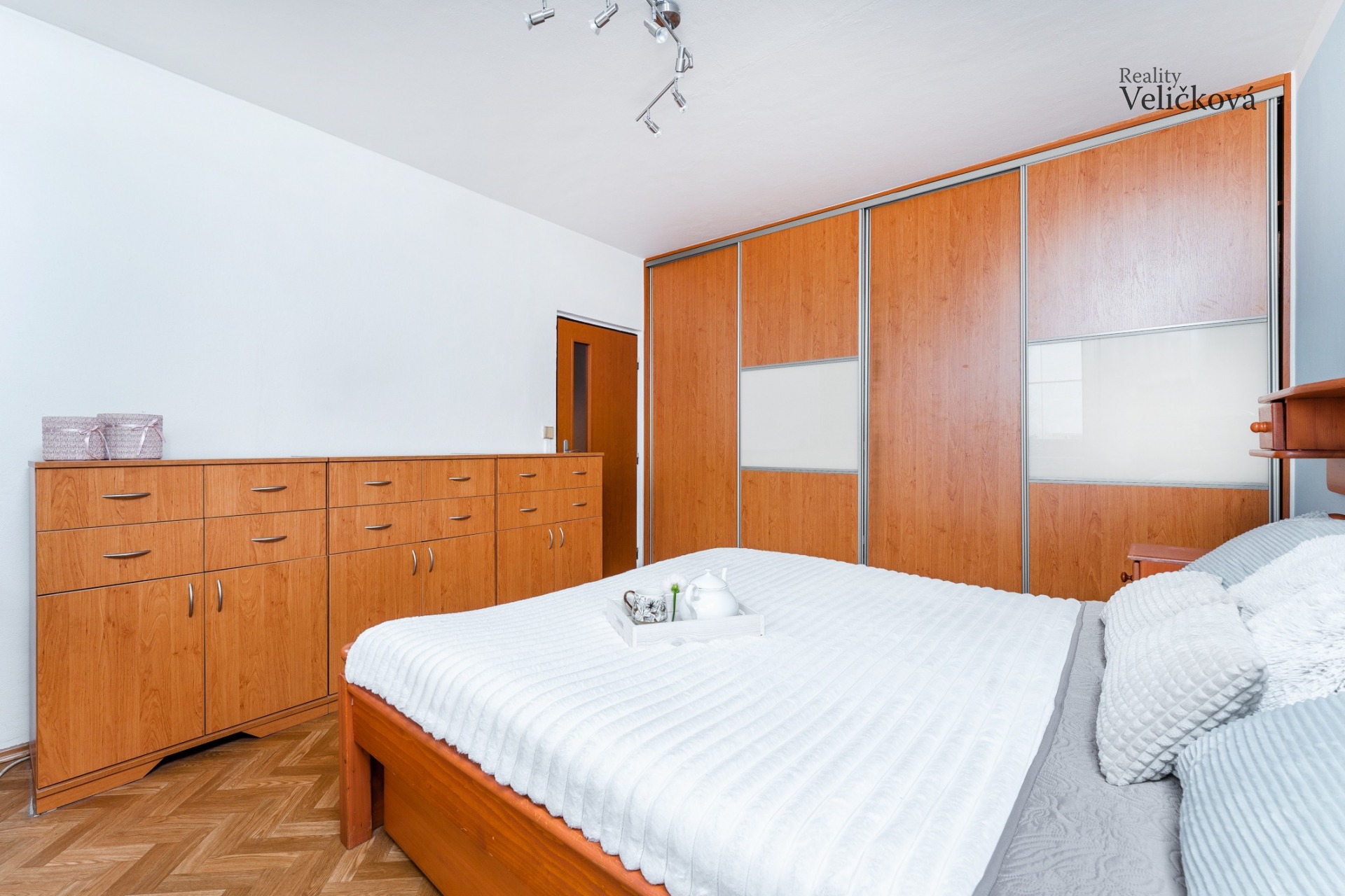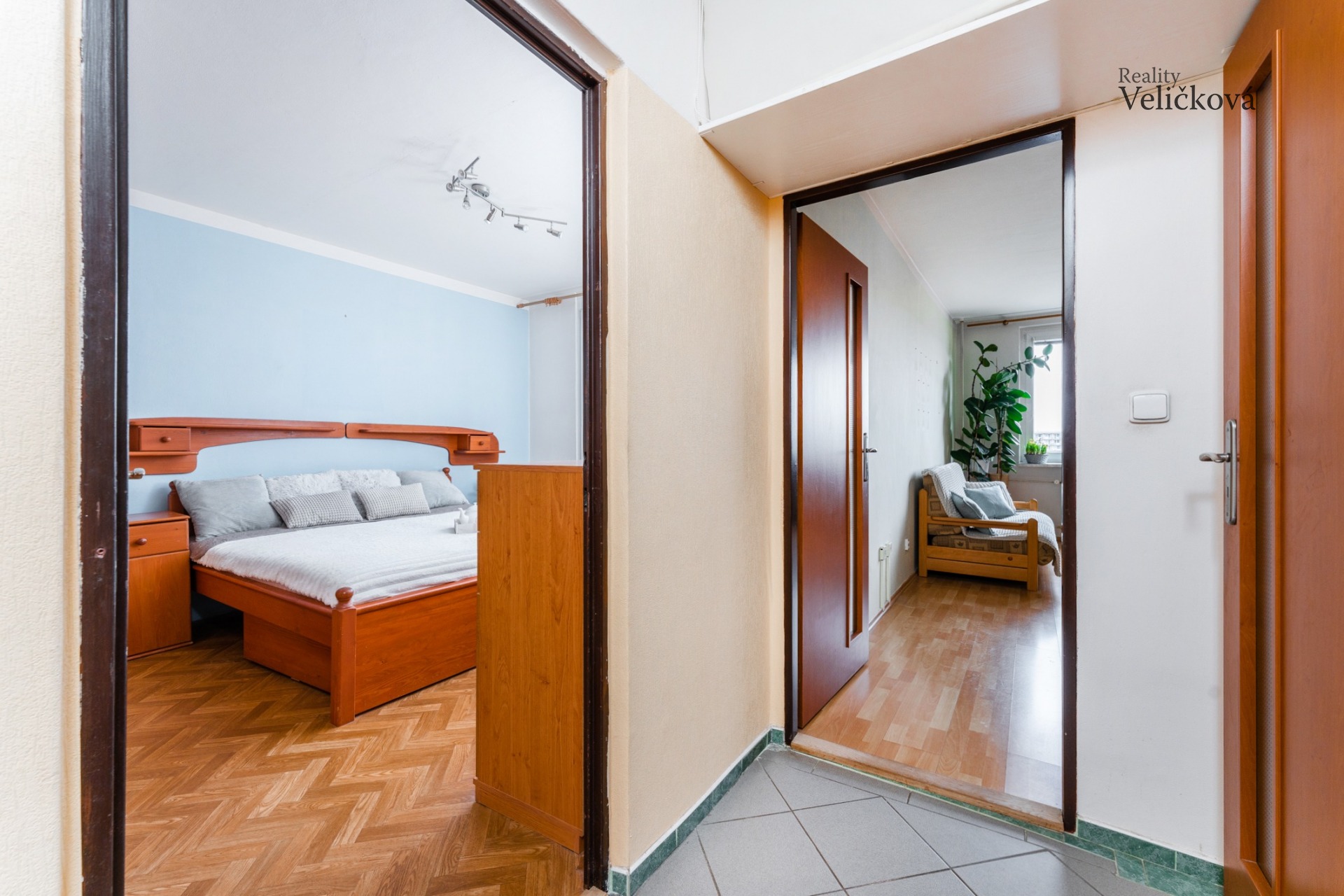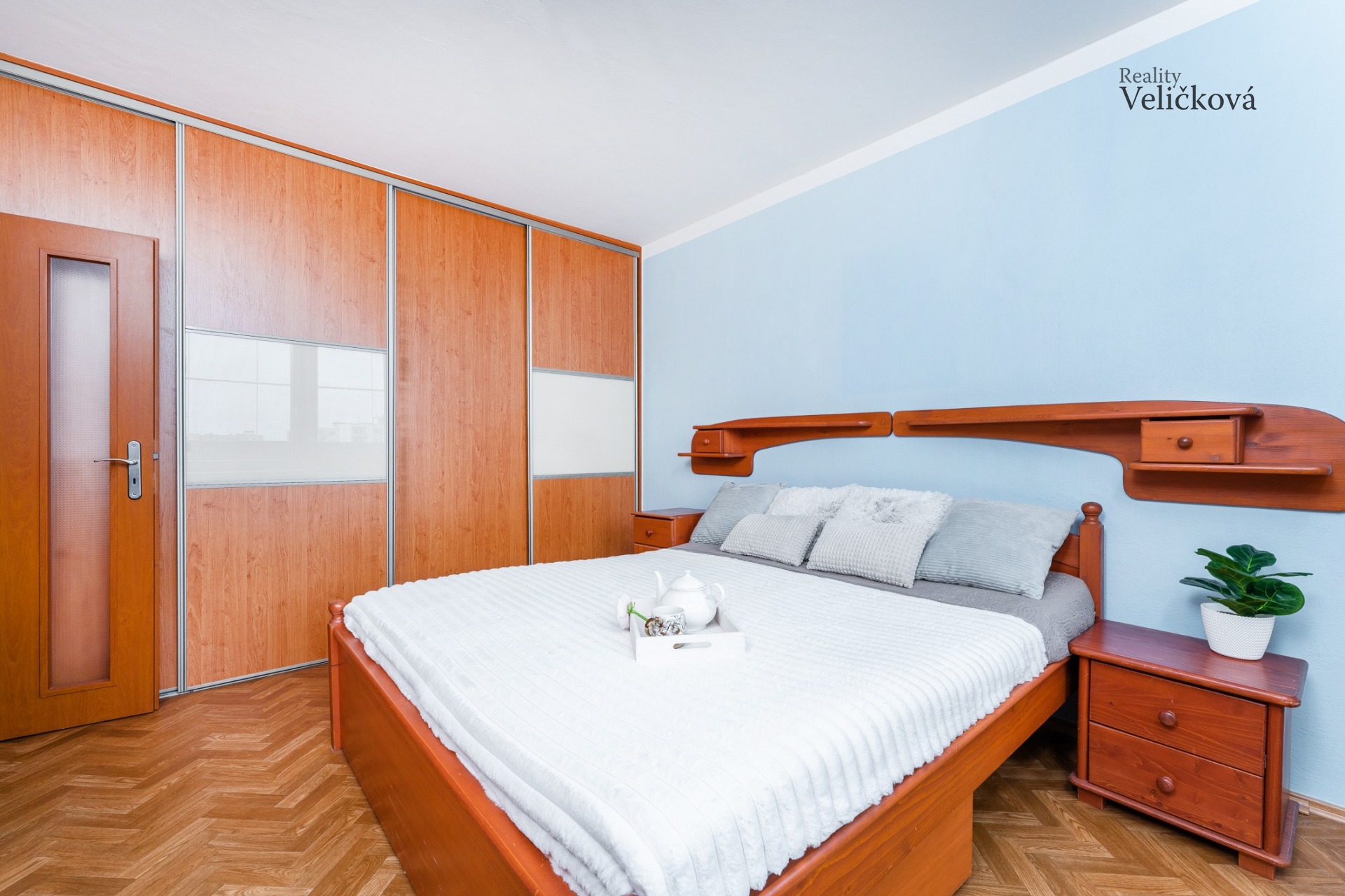 Rekonstrukce bytu: plastová okna se žaluziemi, koupelna vč. vyzdění jádra, kuchyň, vestavěné skříně, podlahy – PVC v dekoru parket v ložnici, plovoucí podlaha v obývacím pokoji, dlažba v chodbě a koupelně, zasklení lodžie.