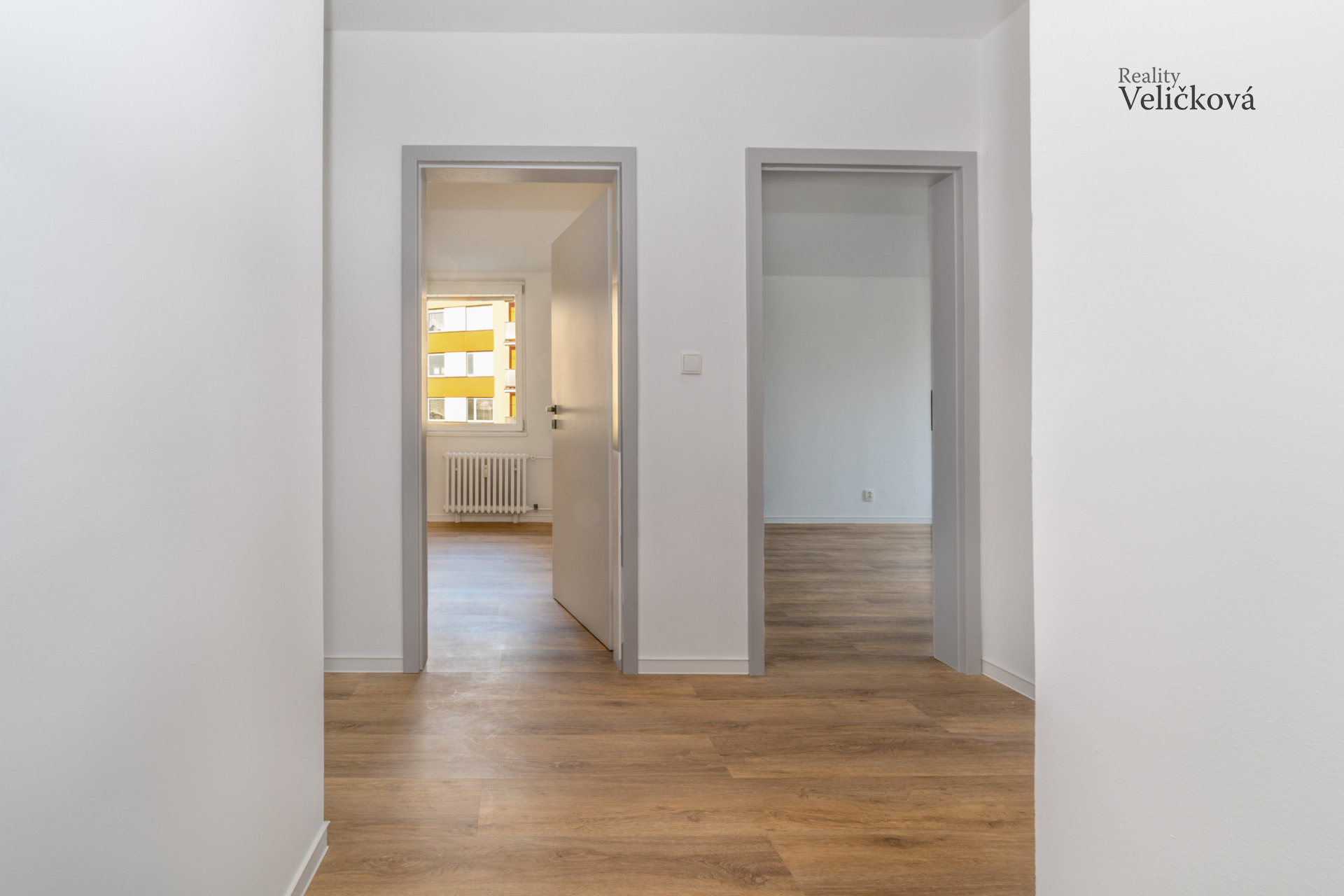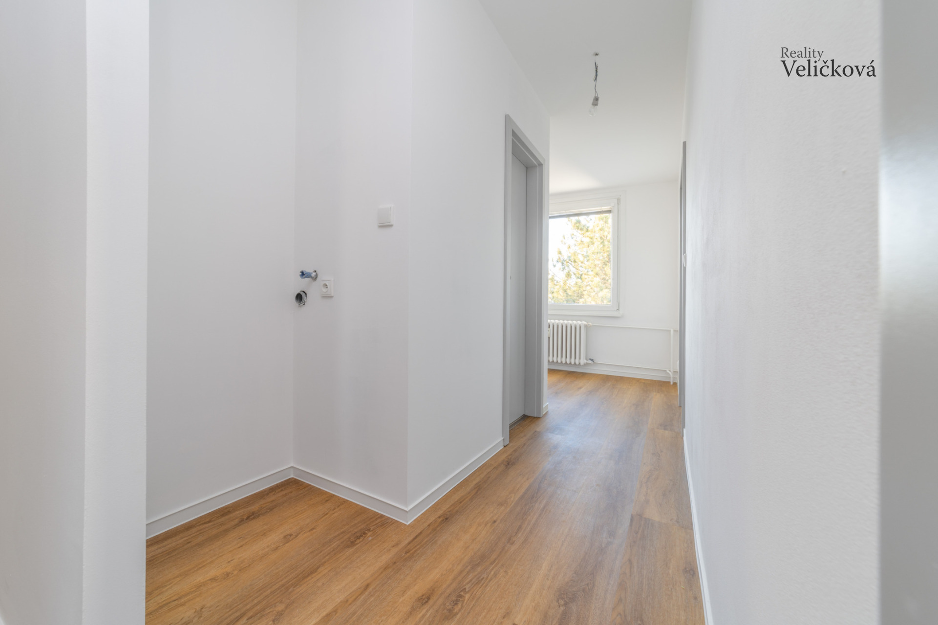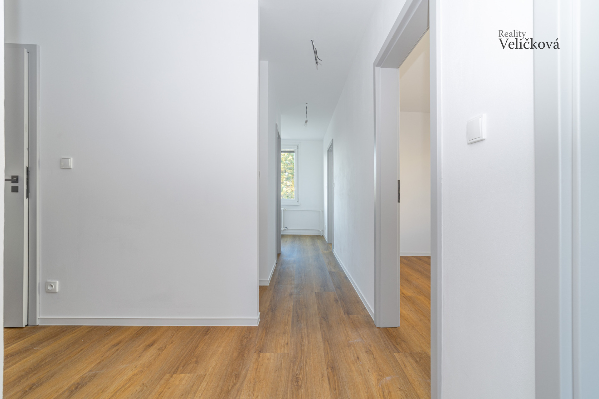 Při kompletní rekonstrukci, která právě byla dokončena vskutku velmi pečlivě, bylo vybudováno zděné jádro, zhotoveny nové omítky, rozvody elektřiny a vody, nové podlahy - vinyl, dlažba v koupelně, obložkové dveře vnitřní i vchodové, nová koupelna, která již čeká pouze na osazení umyvadel a skříňky, příprava pro Vaši budoucí kuchyňskou linku. V celém bytě jsou plastová okna s vnitřními žaluziemi. Topení a ohřev vody jsou zajištěny dálkově, radiátory jsou opatřeny měřiči spotřeby.