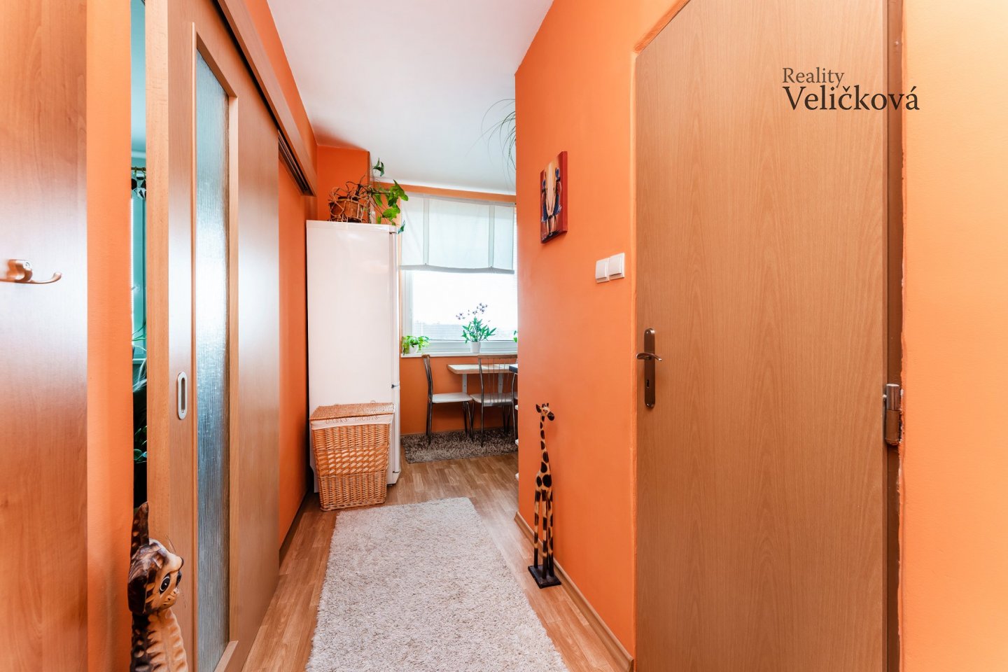 Dispozice - Vstupní chodba, obývací pokoj, koupelna s vanou a WC , které je odděleno nízkou zídkou, kuchyně s jídelním stolem (plynový sporák, trouba, lednice), ložnice s vestavěnou skříní. Podlahy - plovoucí + dlažba. K bytu náleží balkon v mezipatře a sklep.