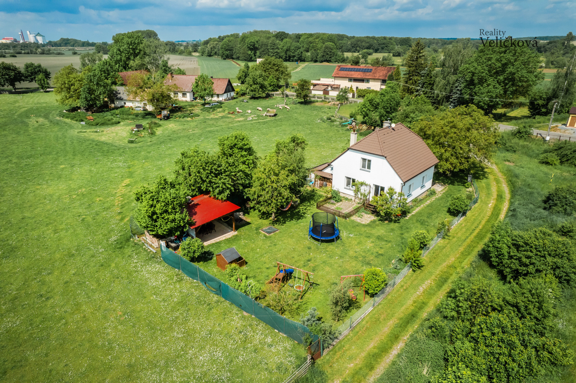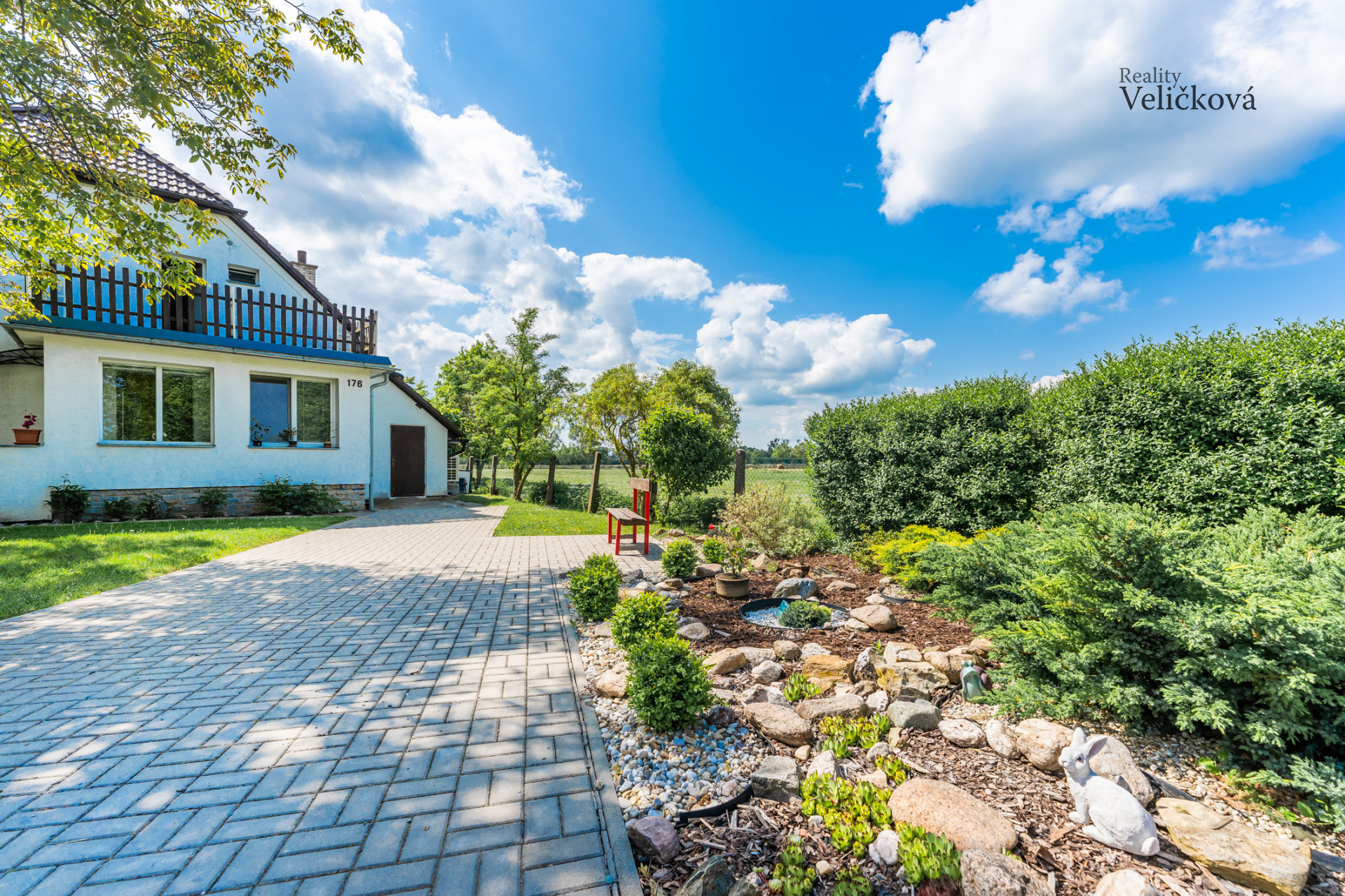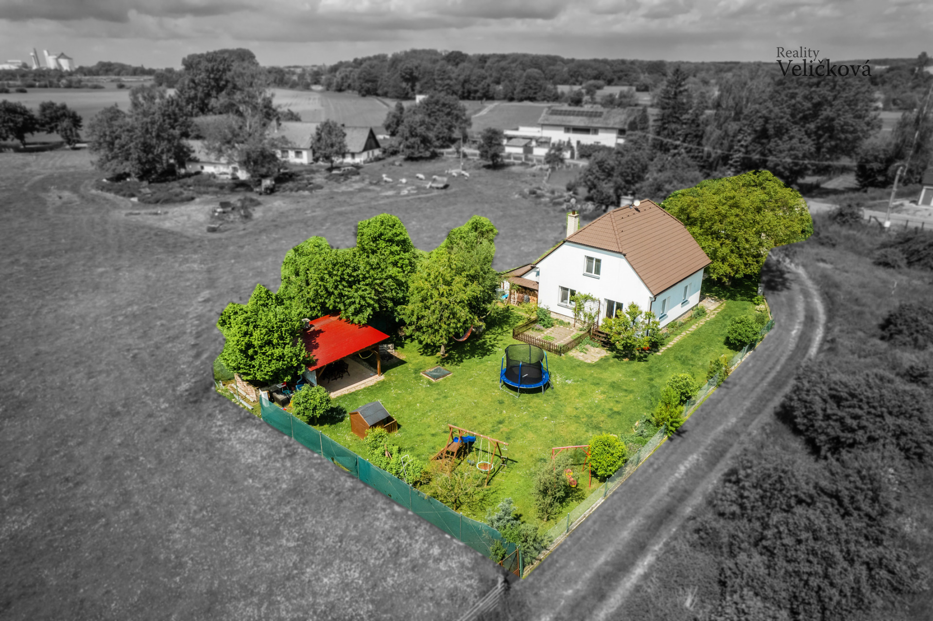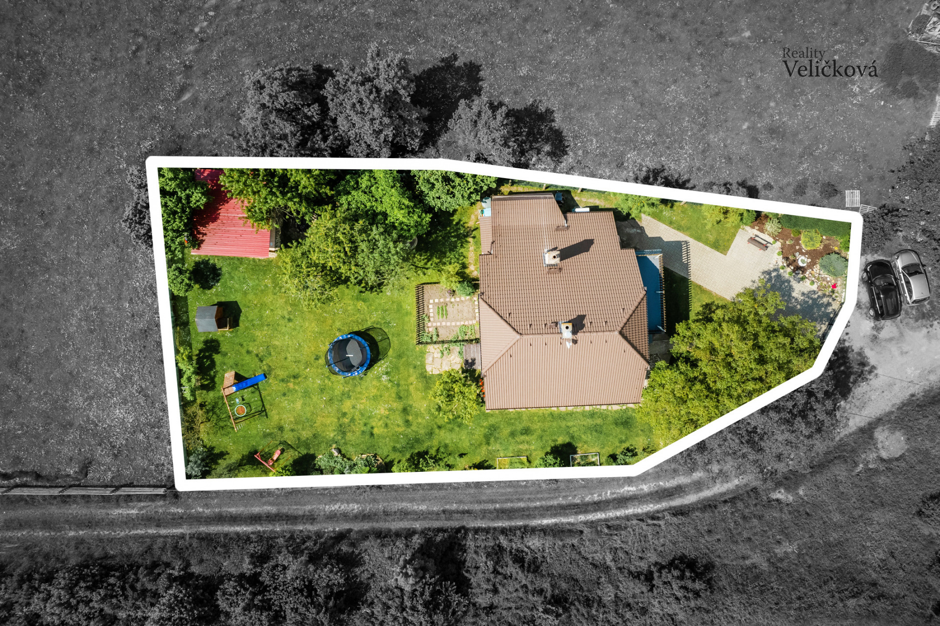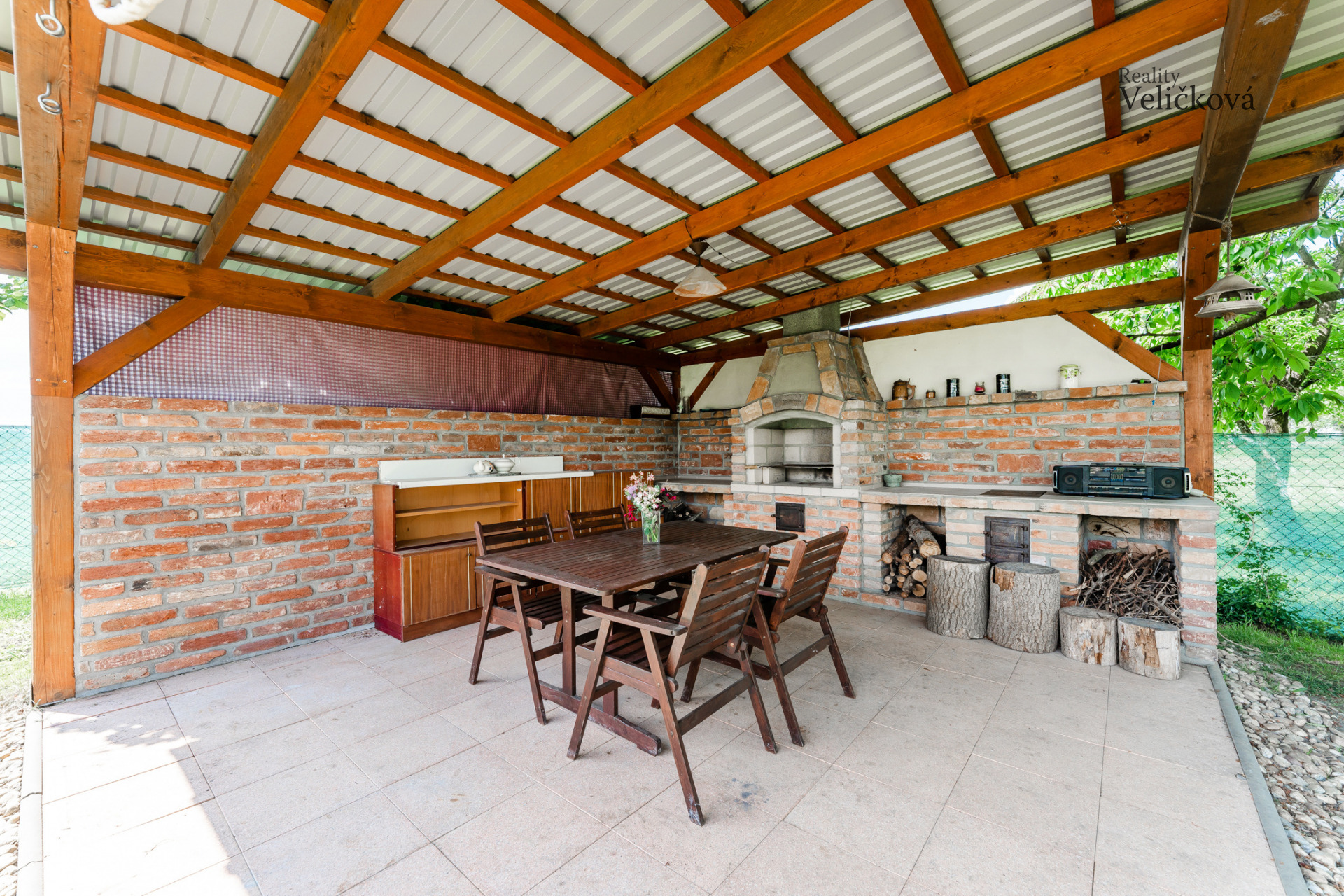 K domu náleží pečlivě udržovaný pozemek o celkové výměře 1007 m². V zahradě se vzrostlými ovocnými stromy jabloně, třešně, meruňka, hruška, švestka se nachází útulný dřevěný altán s krbem, kuchyní, funkční studnou, domkem pro děti a houpačkami.