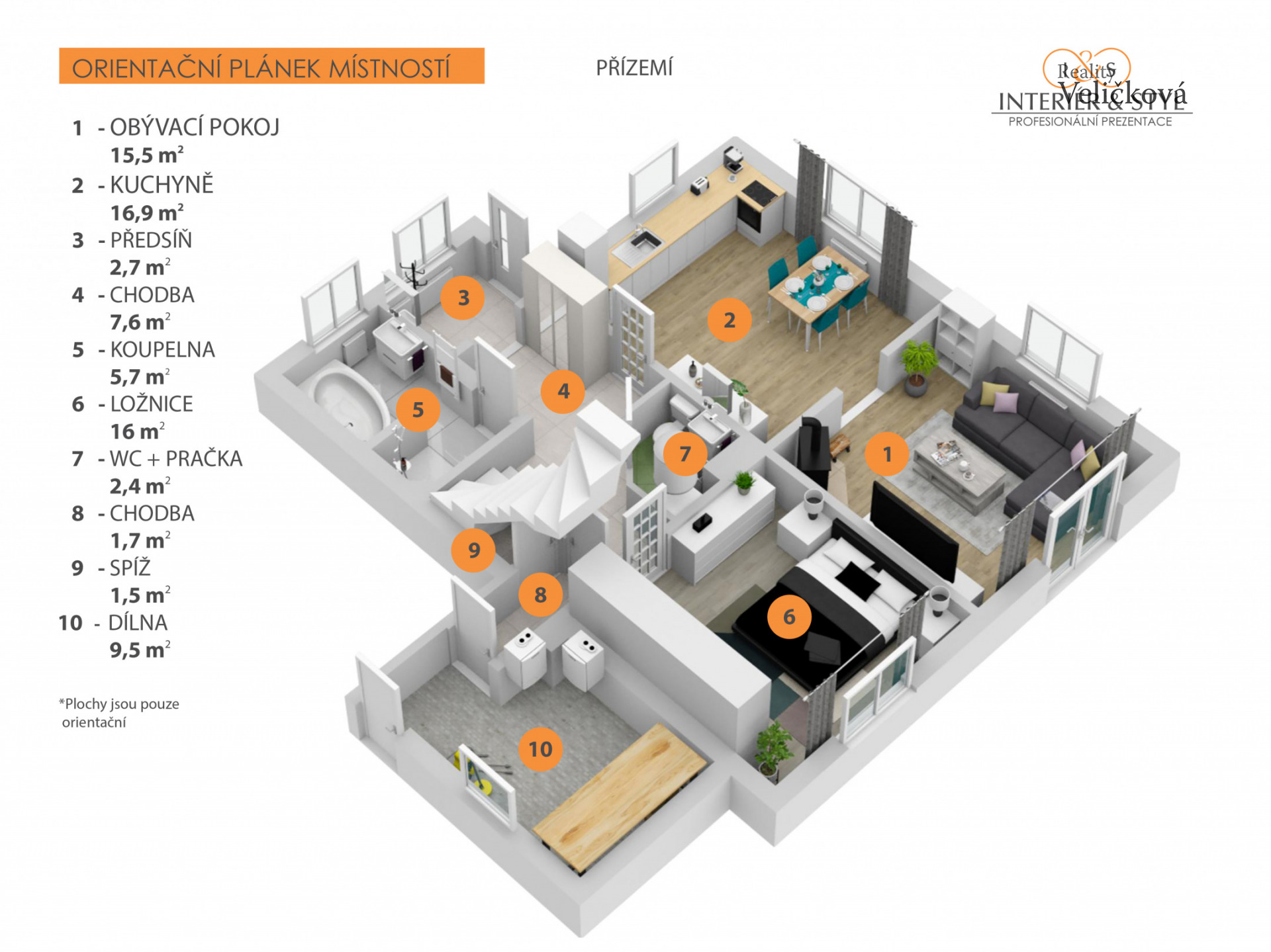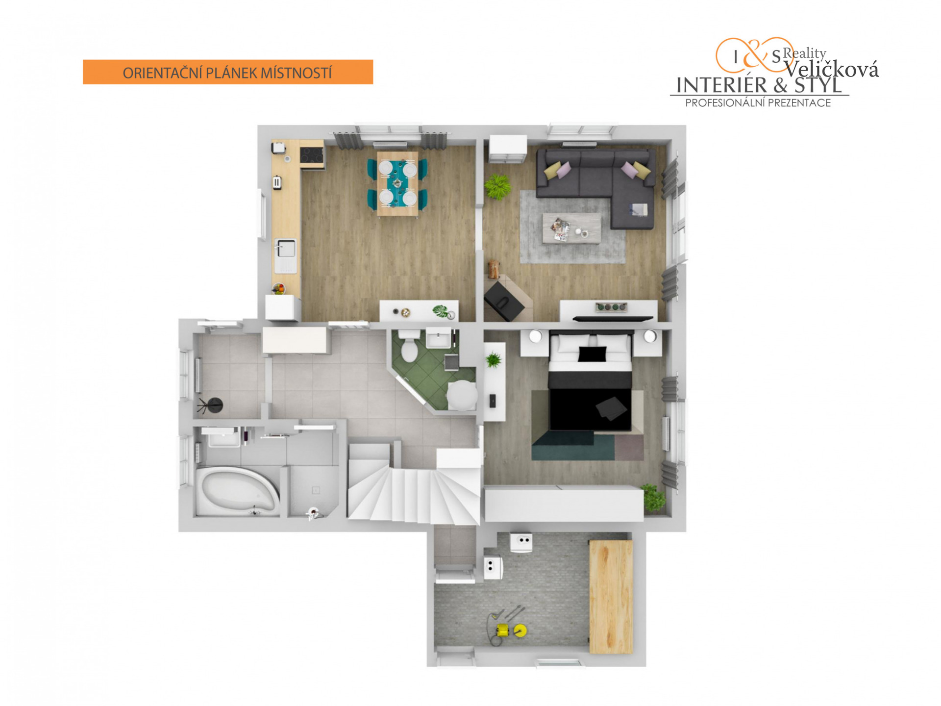 Dvoupodlažní dům s částečným podsklepením s ideální dispozicí 5+kk o celkové podlahové ploše 132 m2.