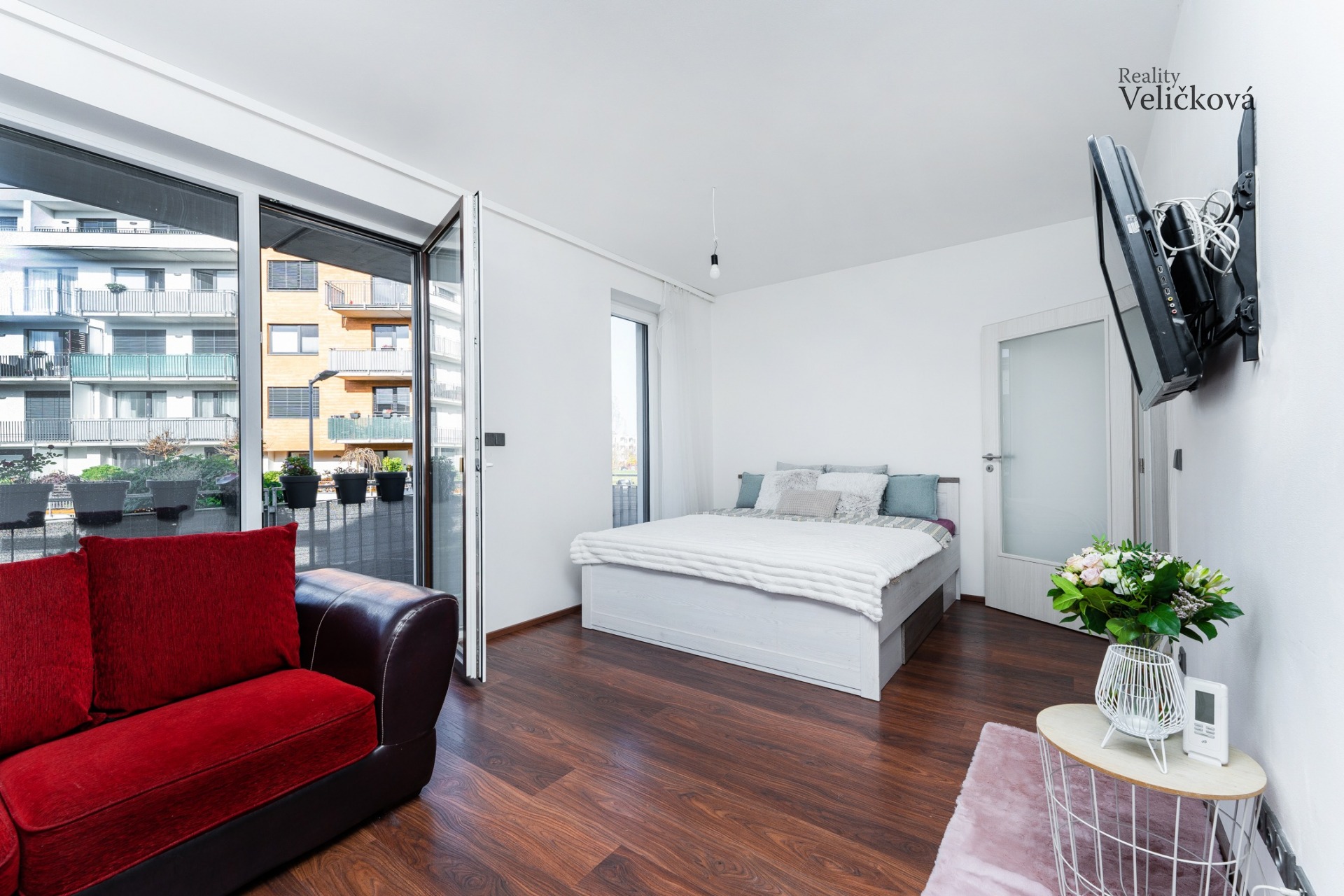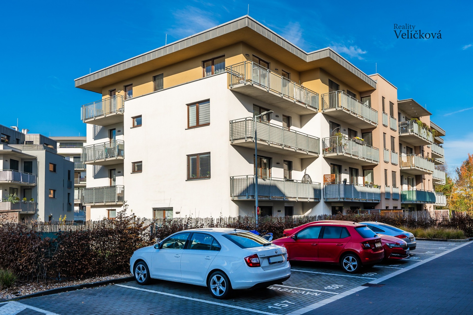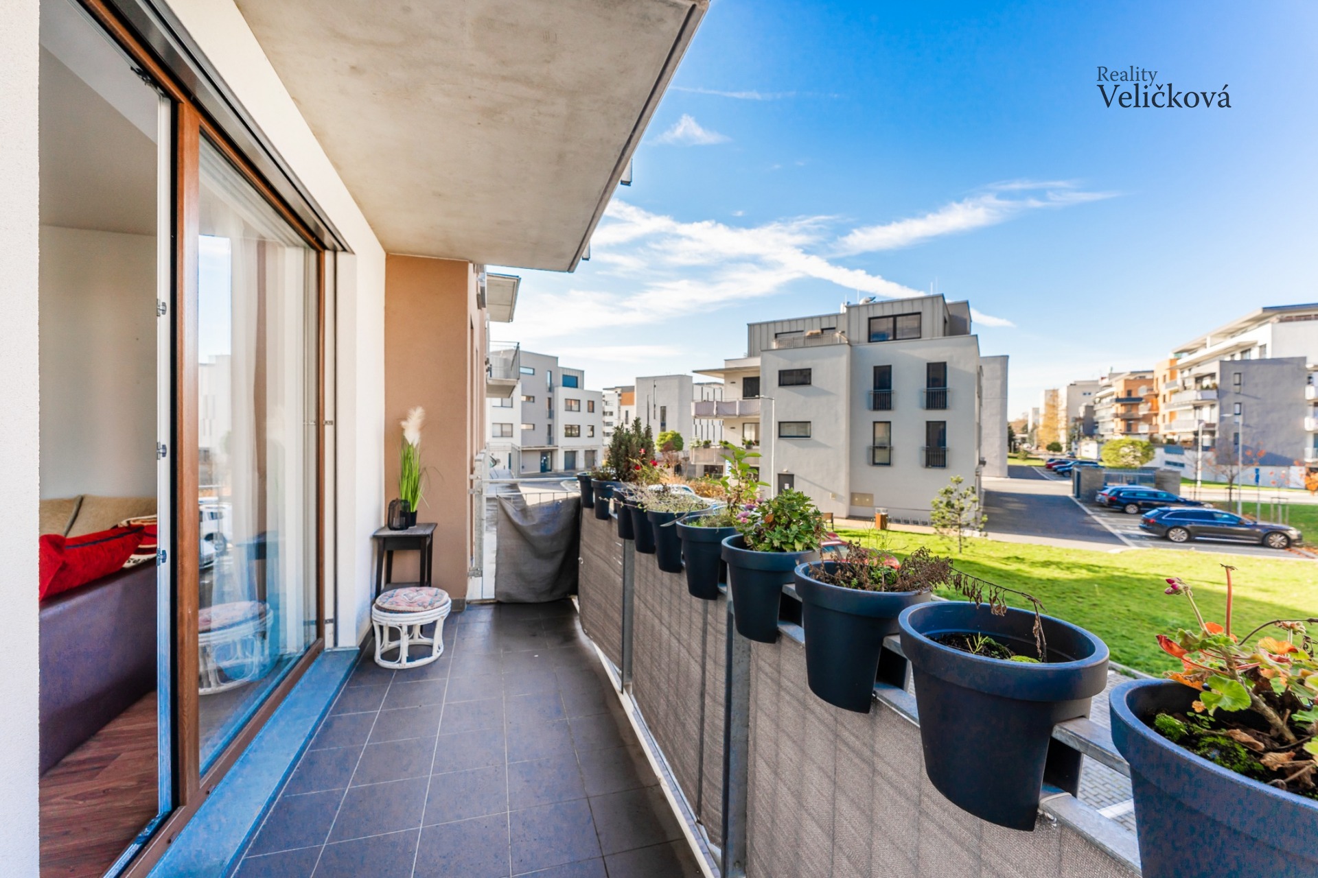 Nádherný byt 2+kk s prostorným balkonem (9 m2) a vlastním parkovacím stáním v novostavbě z roku 2017