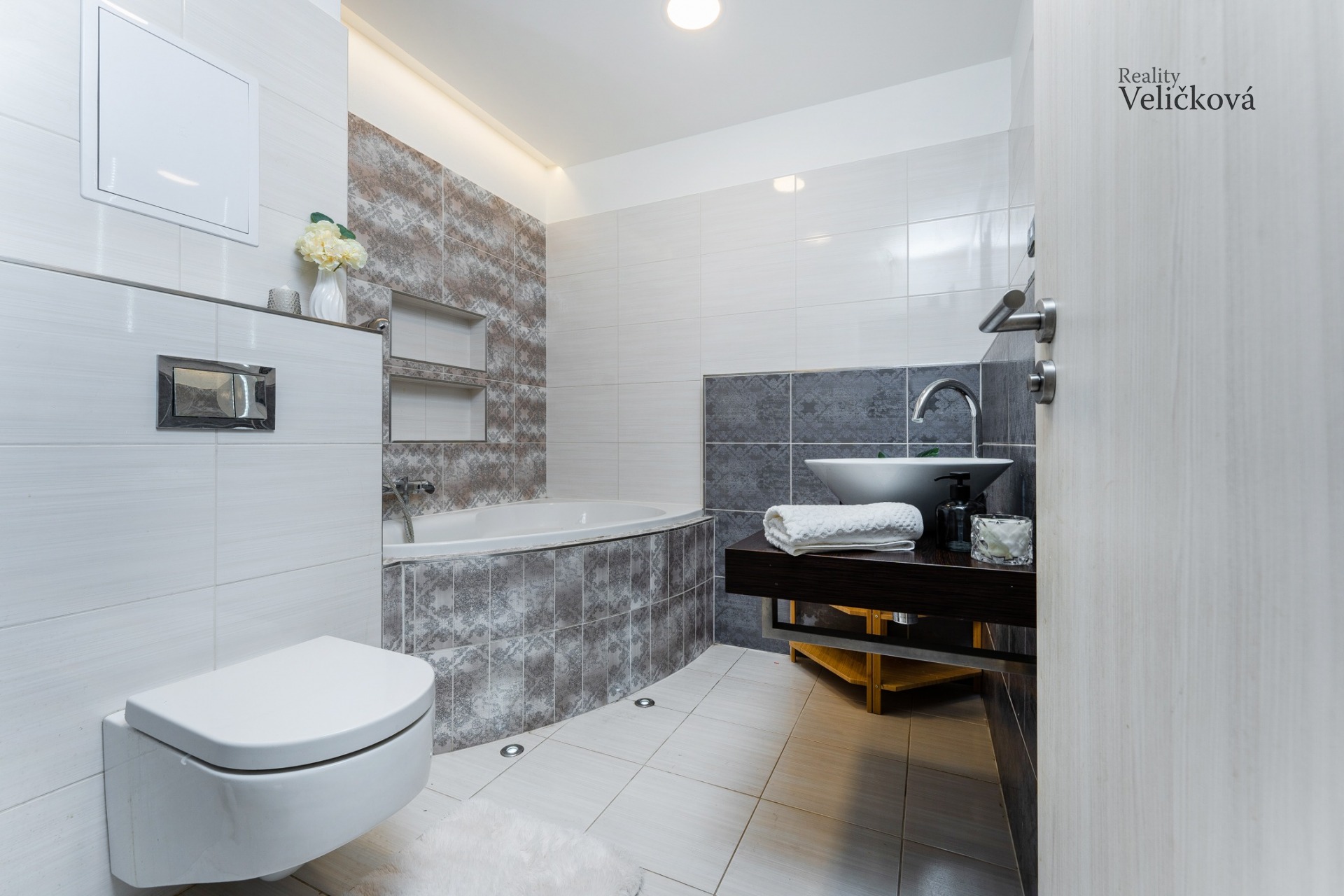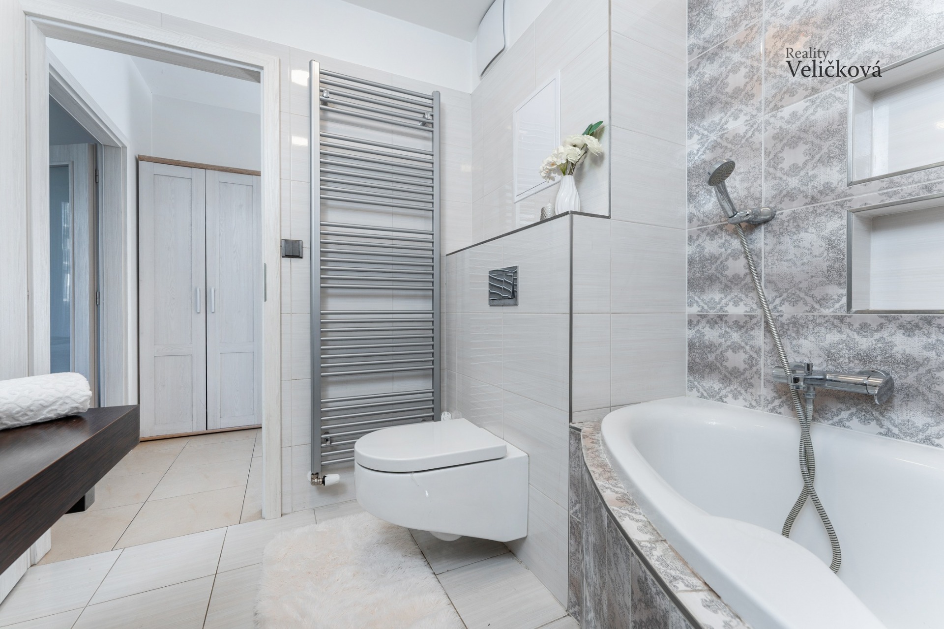 Byt byl postaven a vybrán v nejvyšších standardech vybavení - krásné obložkové interiérové dveře, radiátory se speciální povrchovou úpravou, husí krky pro prostupy kabelů k televizi, již zmiňované předokenní žaluzie, podlahové vytápění v koupelně s podsvícením podlahy a další detaily pro lepší komfort bydlení!