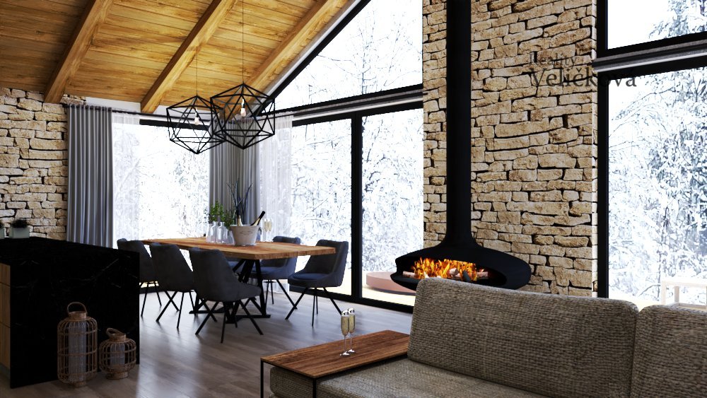 Vila se prodává dokončená na klíč. Cílem bylo vybrat kvalitní a estetické materiály vhodné do horské krajiny, proto nejvíce využíváme přírodního kamene, skla a dřeva.
