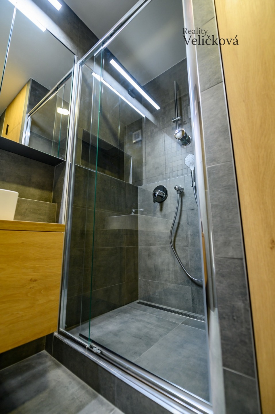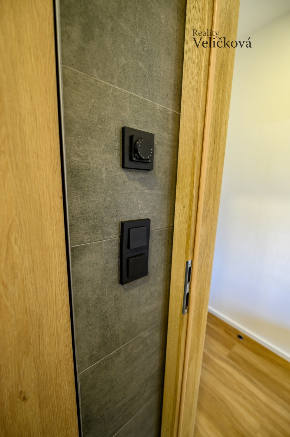 V roce 2022 byt prošel kompletní rekonstrukcí včetně SDK stropů, elektroinstalace včetně LED osvětlovacích prvků, vypínačů a zásuvek v provedení antracit, podlahová krytina vinyl s podložkou v provedení dub natural, individuálně řešená kuchyně s LED osvětlením v provedení dub dřevodekor/ šedá/ bílošedá včetně spotřebičů německé značky KLUGE, čelo postele s úložným prostorem v provedení šedá, v koupelně byly použity rektifikované obklady a dlažba v provedení kámen/ antracit, závěsné WC a sanita německé značky JUNGBORN, skleněný sprchový kout, pákové baterie německé značky GROHE, vestavěné skříňky se zrcadlovými dveřmi včetně LED osvětlení, vestavěné dveře, skříně pro pračku se sušičkou v provedení dřevodekor, byly vyměněny vstupní bezpečnostní dveře za nové v provedení antracit, dveře jsou obložkové, prosklené v provedení dřevodekor. Okna jsou plastová se žaluziemi, lodžie je zasklená.