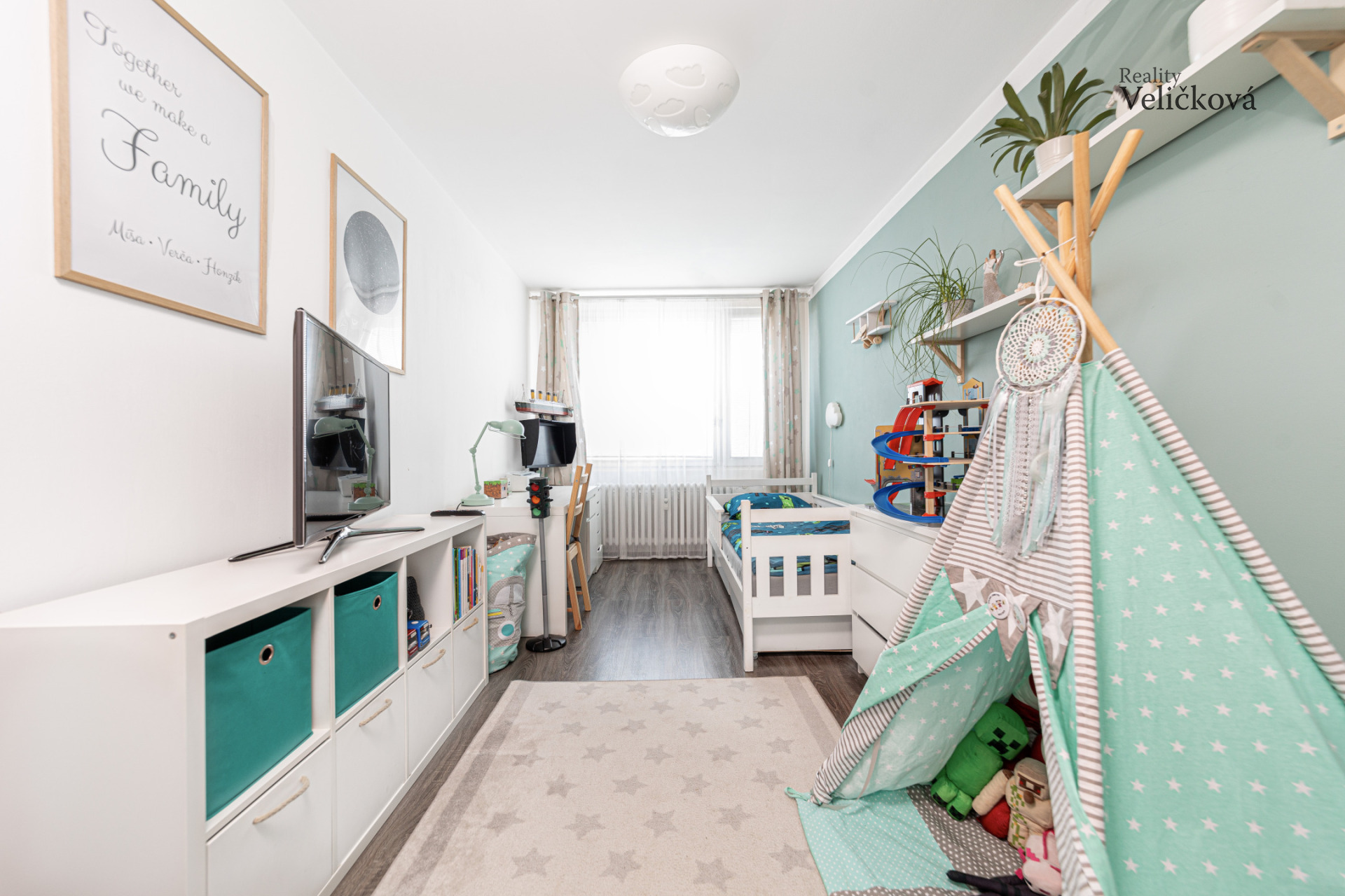 Dispozice: vstupní chodba ( 7,51 m2), ložnice ( 11,34 m2), dětský pokoj s vestavěnou skříní ( 14,7 m2), kuchyň s jídelním koutem (10,24 m2), obývací pokoj ( 21 m2), koupelna s umyvadlem a vanou (2,48 m2), WC ( 0,92 m2), prostorná lodžie ( 7,2 m2), komora (2,04 m2), 2. komora na patře (2,08 m2), sklep (2 m2). Parkování je u domu bezproblémové, pro tuto zónu v centru města je třeba požádat o parkovací kartu. V blízkosti naleznete zároveň mateřskou i základní školu, přímo u domu zastávku MHD, AFI obchodní centrum, mnoho kaváren a restaurací, obchodů, zdravotních středisek, supermarket Lidl, benzinovou stanici, vlakové nádraží v docházkové vzdálenosti a samozřejmě nesmíme zapomenout na mnoho sportovních a volnočasových aktivit v okolí, parků, cyklostezek, bruslařskou stezku vedoucí až na Kuňku apod.
