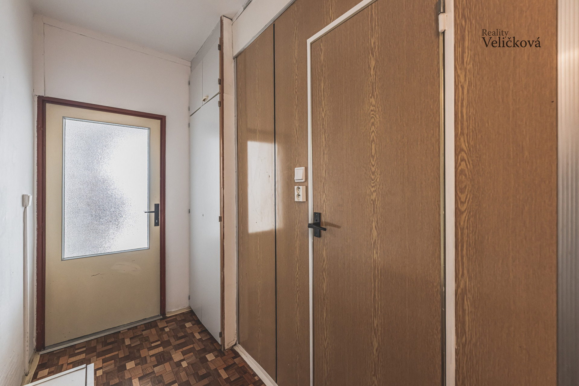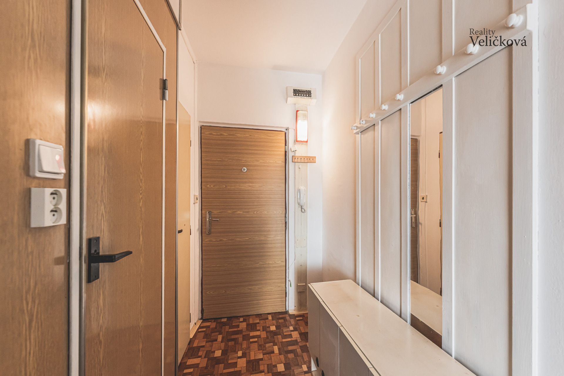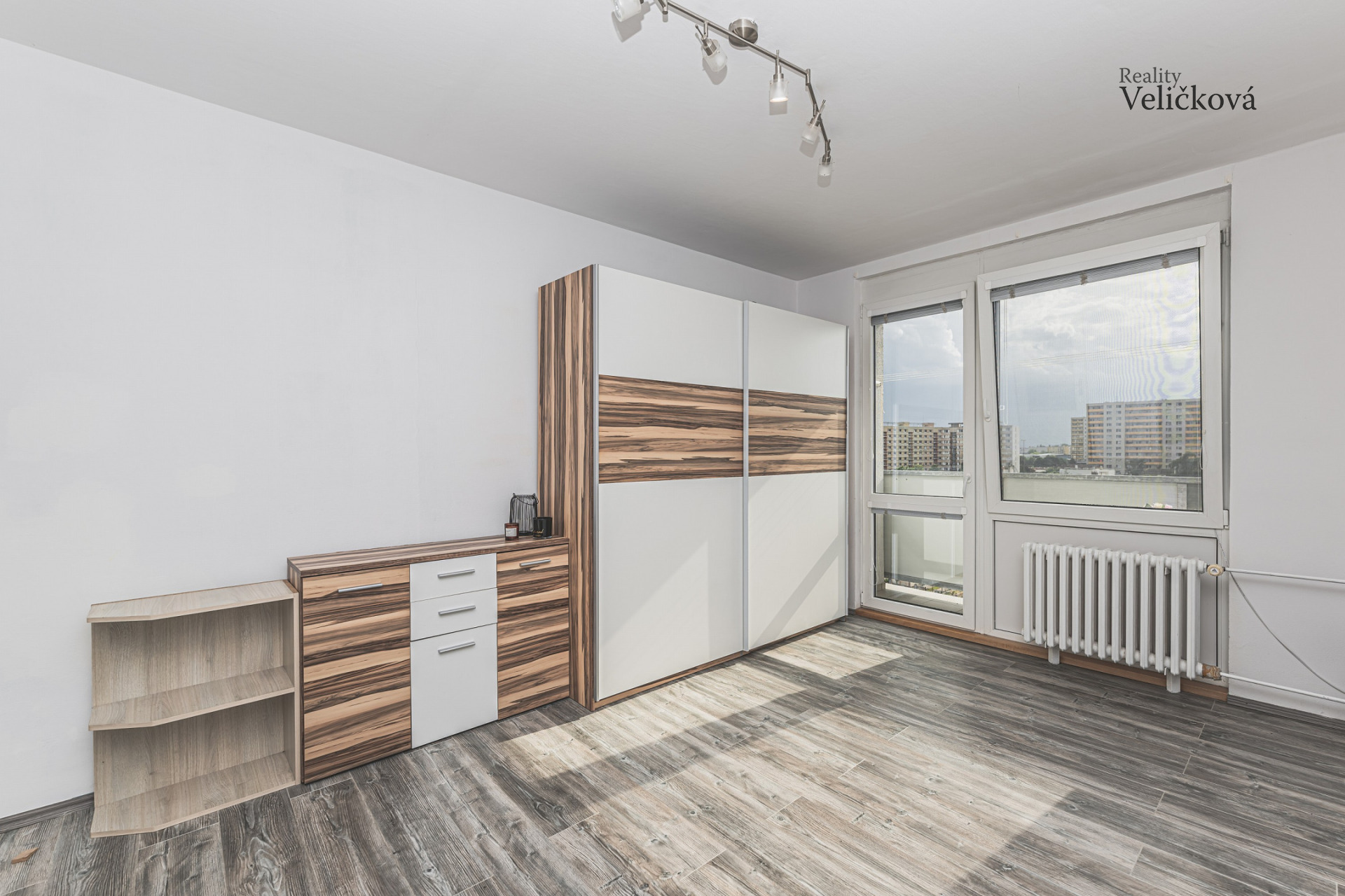 Bytová jednotka disponuje vstupní chodbou s vestavěnou skříní, komorou, kde je umístěn policový systém - možnost umístit pračku), koupelnou a WC (původní umakartové jádro), obytná místnost se skříněmi a malá kuchyňská linka se vstupem na balkon. Okna jsou plastová se žaluziemi, podlahy plovoucí a linoleum.