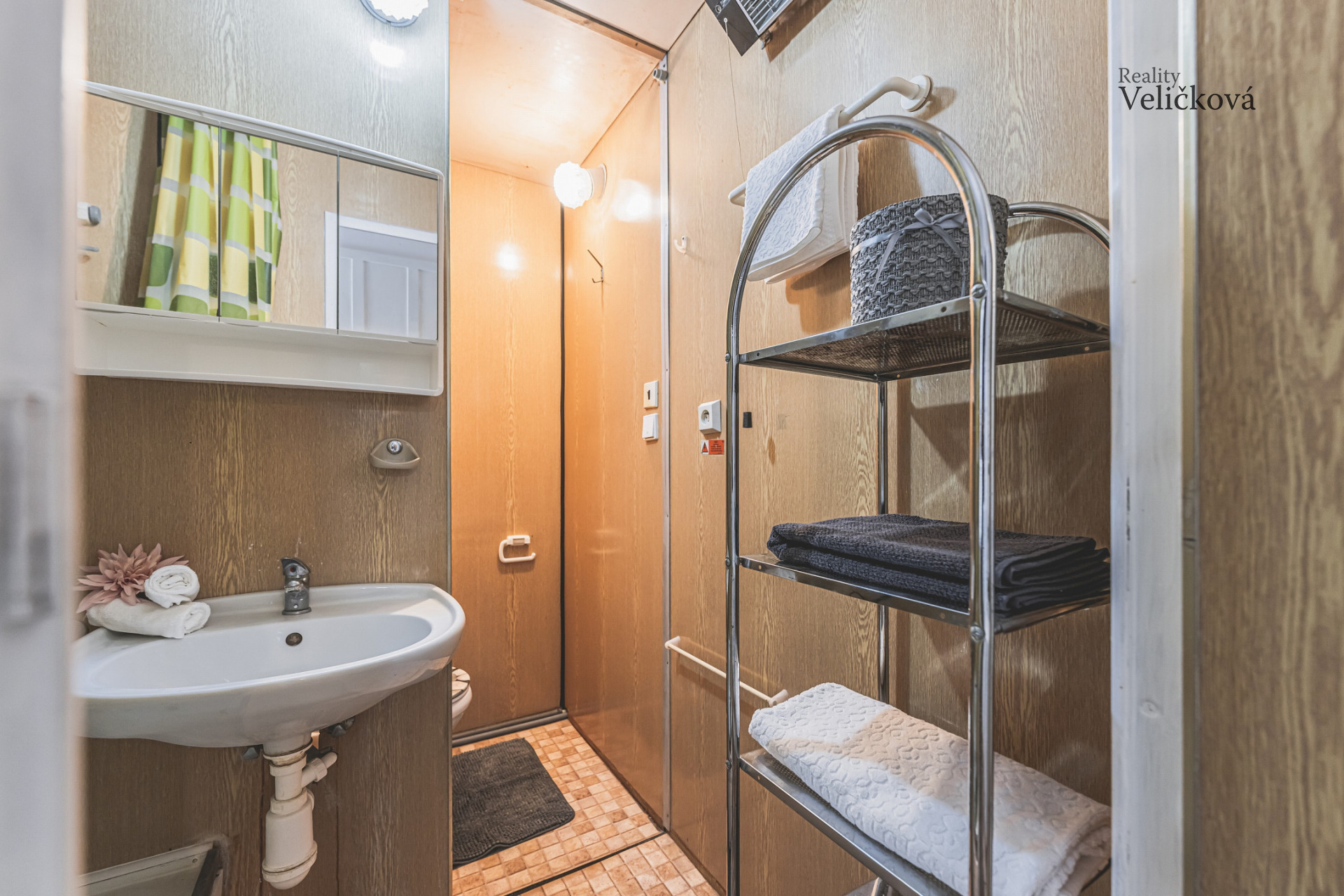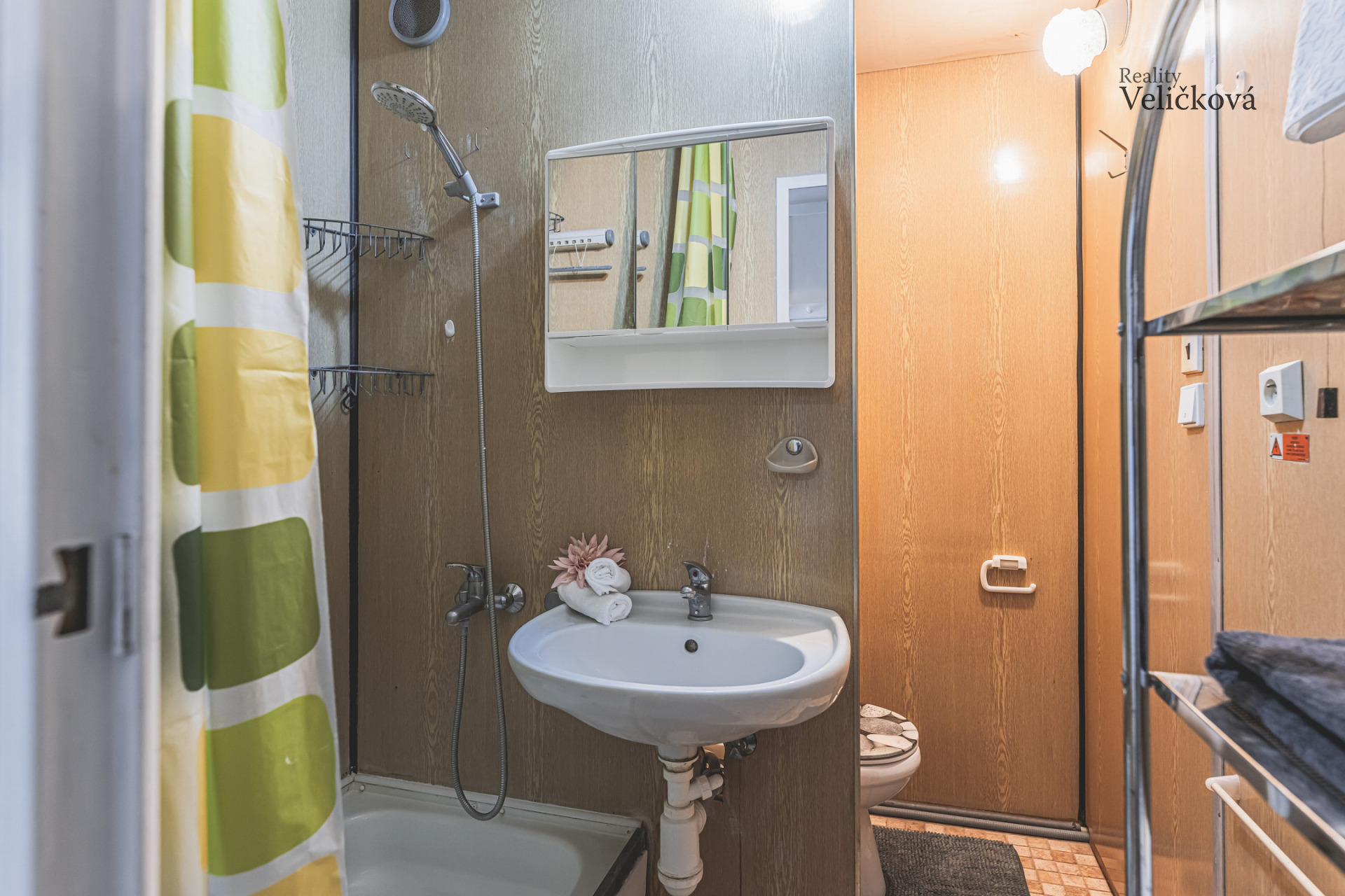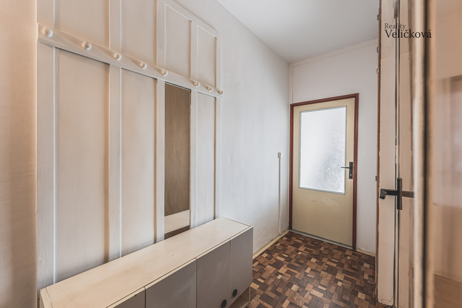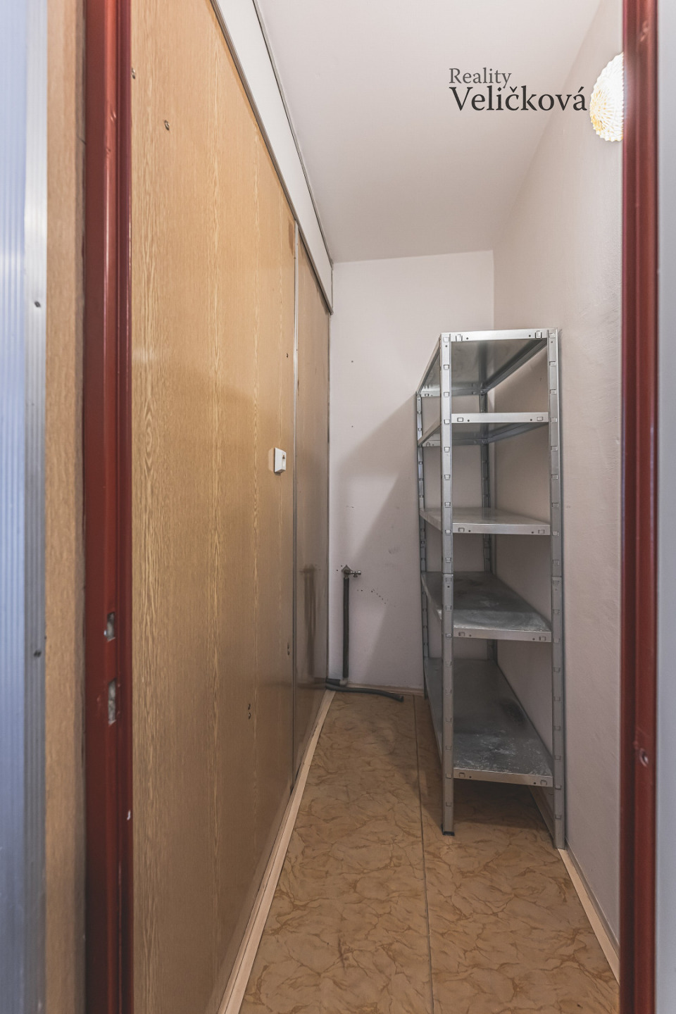Bytová jednotka disponuje vstupní chodbou s vestavěnou skříní, komorou, kde je umístěn policový systém - možnost umístit pračku), koupelnou a WC (původní umakartové jádro), obytná místnost se skříněmi a malá kuchyňská linka se vstupem na balkon. Okna jsou plastová se žaluziemi, podlahy plovoucí a linoleum.