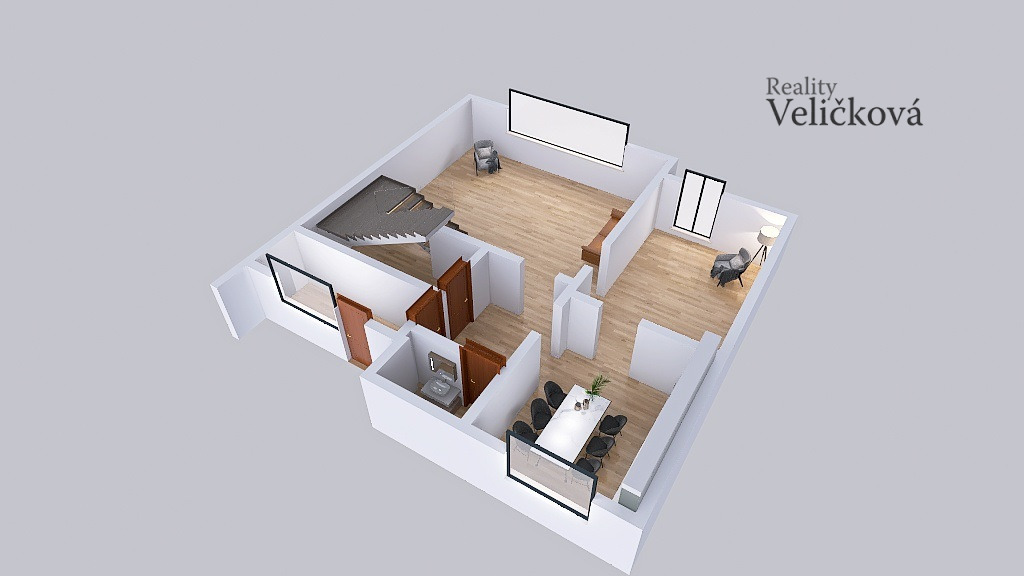 Dům disponuje celkovou obytnou plochou 83 metrů čtverečních a je rozdělen na tři obytné pokoje a prostorný obývací pokoj rozdělený na dvě volně průchozí samostatné části. Dispozice domu je promyšlená a praktická, s chodbou, která vede přímo do moderní a vybavené kuchyně. Odtud se snadno dostanete do útulného obývacího pokoje, kde si můžete odpočinout a trávit čas s rodinou a přáteli. Tři pokoje, koupelna s vanou a oddělené WC jsou v horní části domu, ke kterým se dostanete po krásném schodišti.