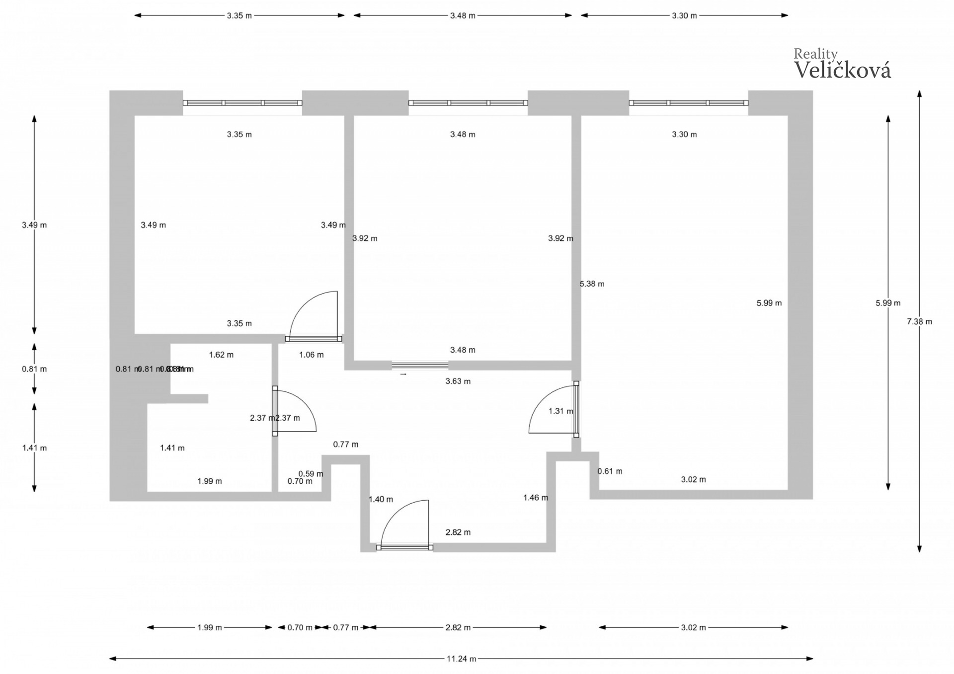 Celková podlahová plocha jižně orientovaného bytu je 64 m2.