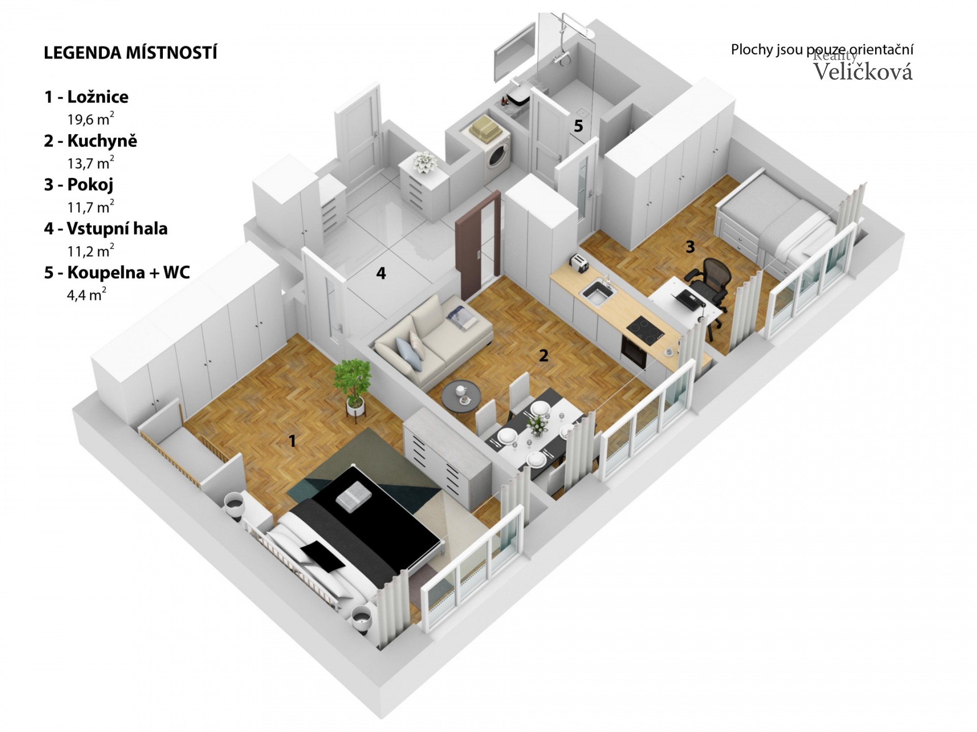 Výměry v pláncích jsou orientační a jsou uvedeny bez vnitřních zdí.