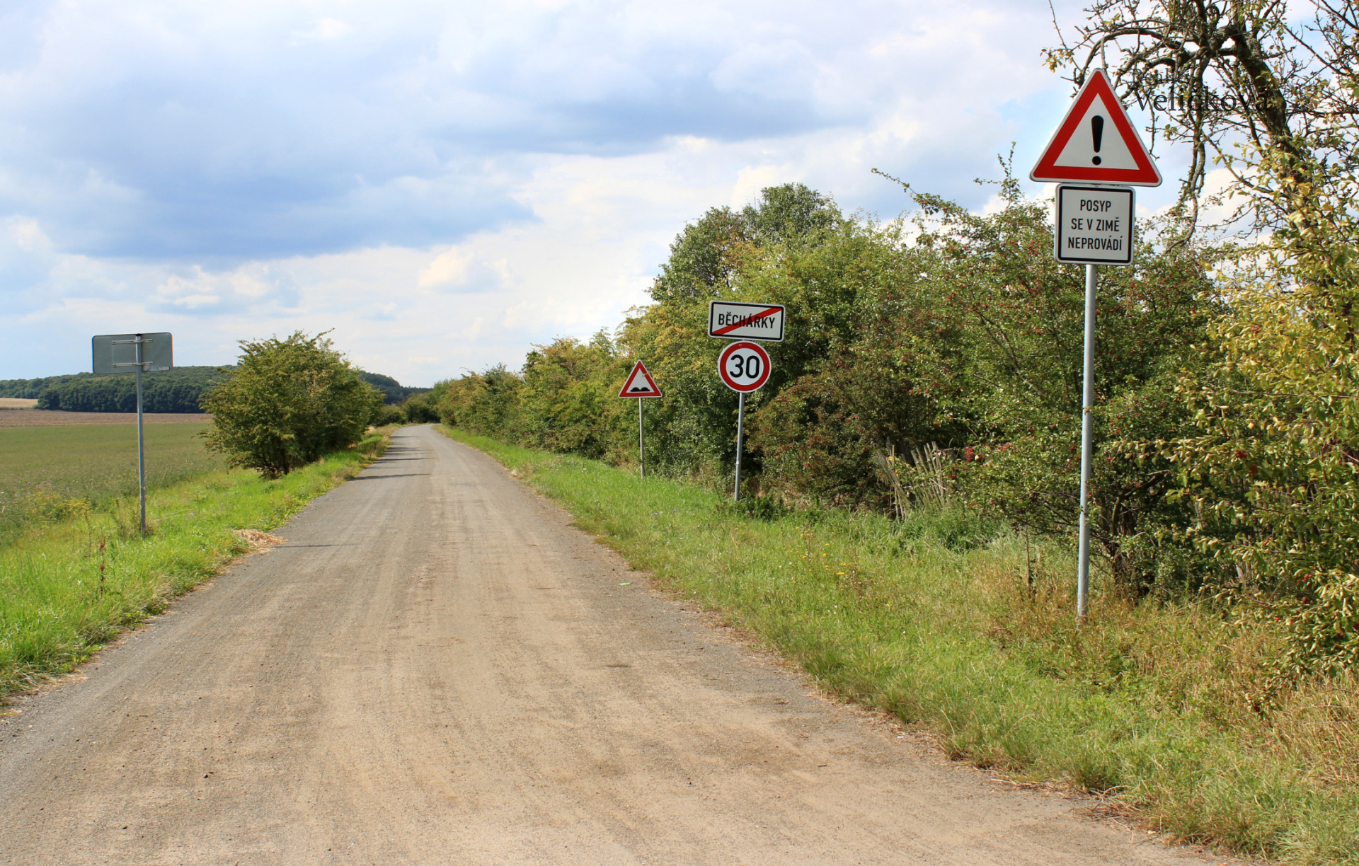 Elektřina na hranici, vodovod 2 m, jednotná kanalizace v obci