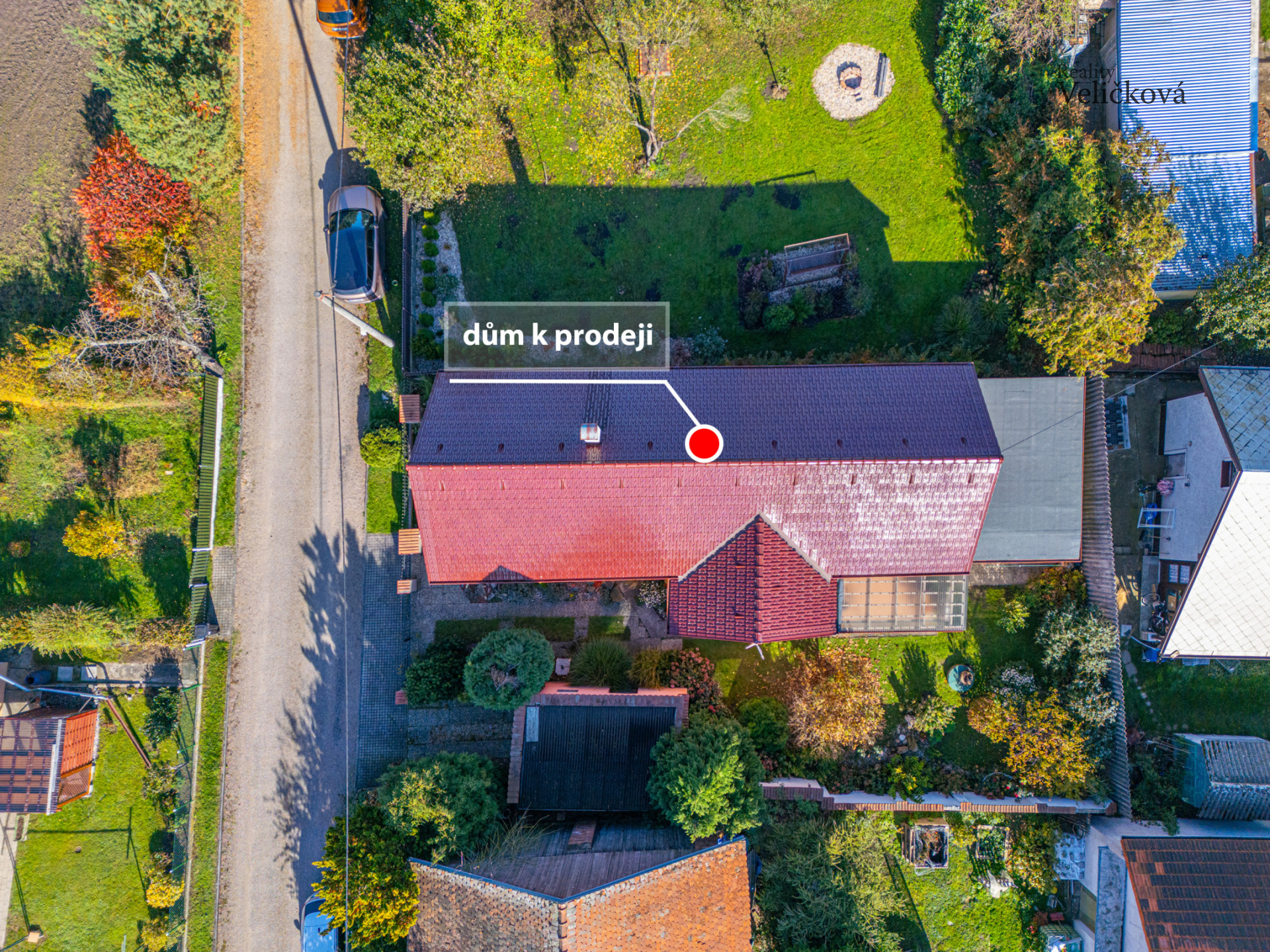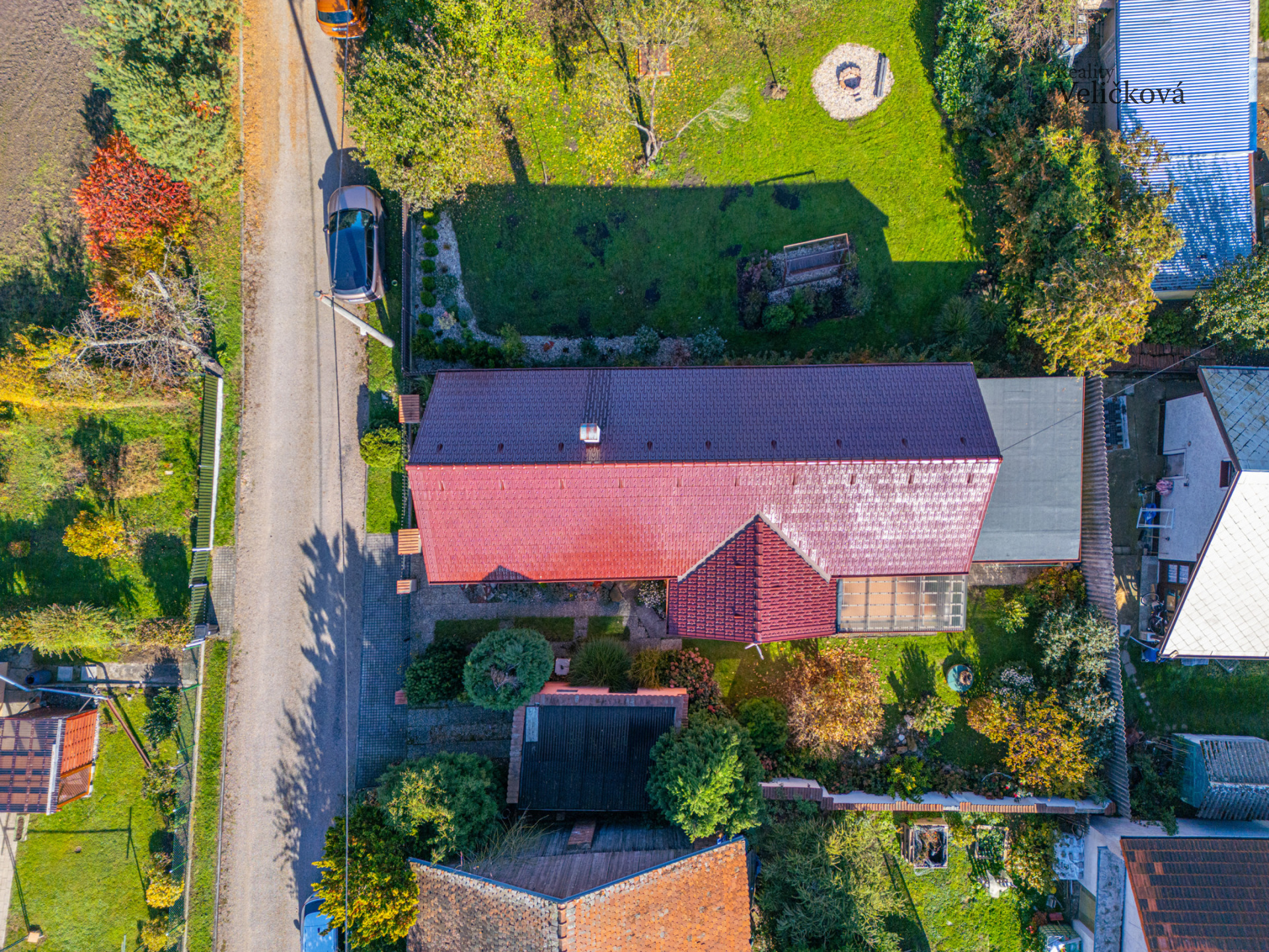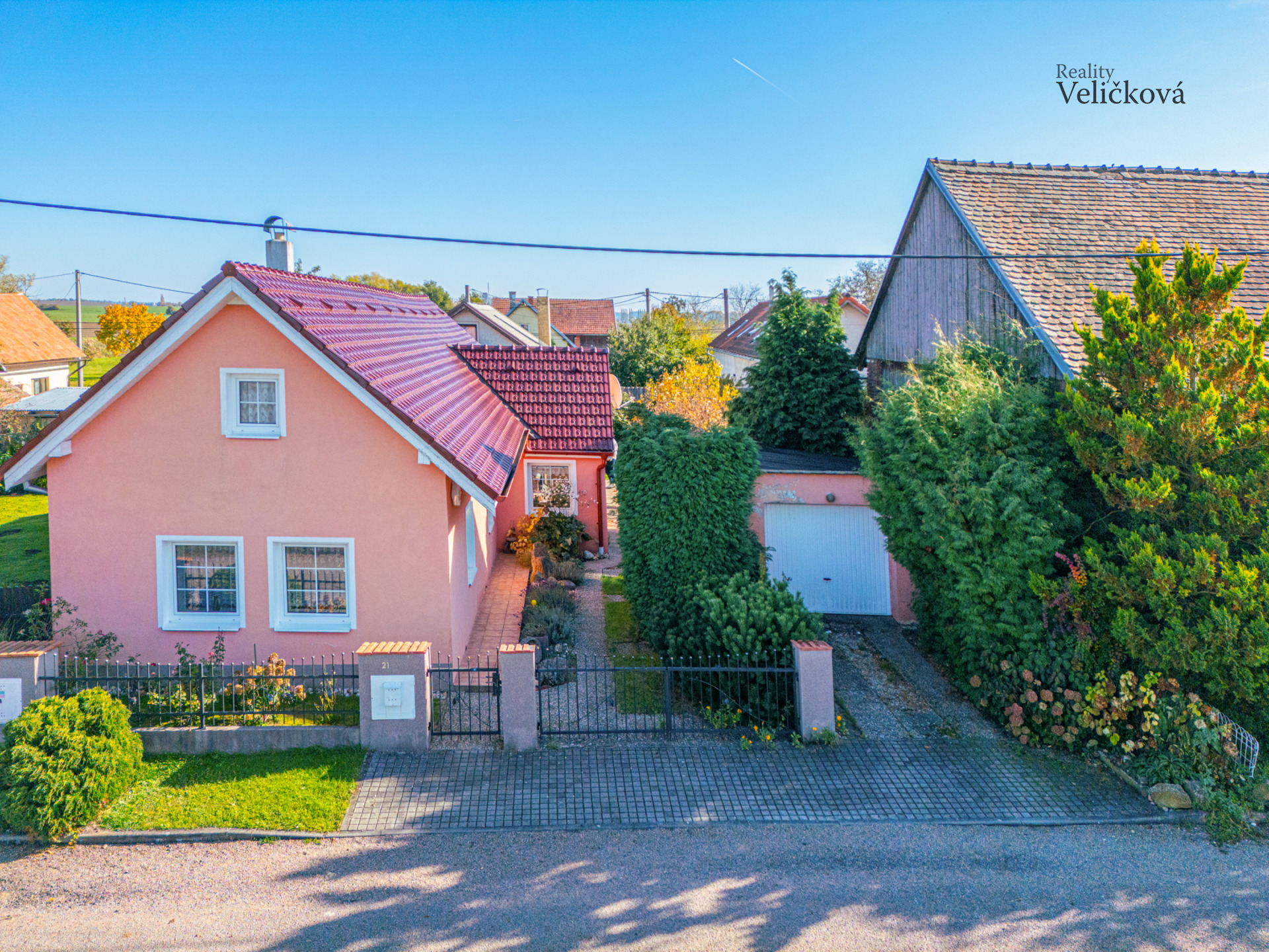 Pozemek o výměře 386 m² je oplocený a udržovaný, s okrasnou zelení a vzrostlými stromy, které poskytují dostatek soukromí. K dispozici je garáž pro jeden vůz a zpevněná plocha pro další parkování. Dům dýchá venkovskou pohodou a atmosférou chaty, kde se zpomalí čas a člověk najde skutečný klid. Je to místo, kam se budete rádi vracet, ať už přijedete na víkend, nebo zůstanete na trvalo.