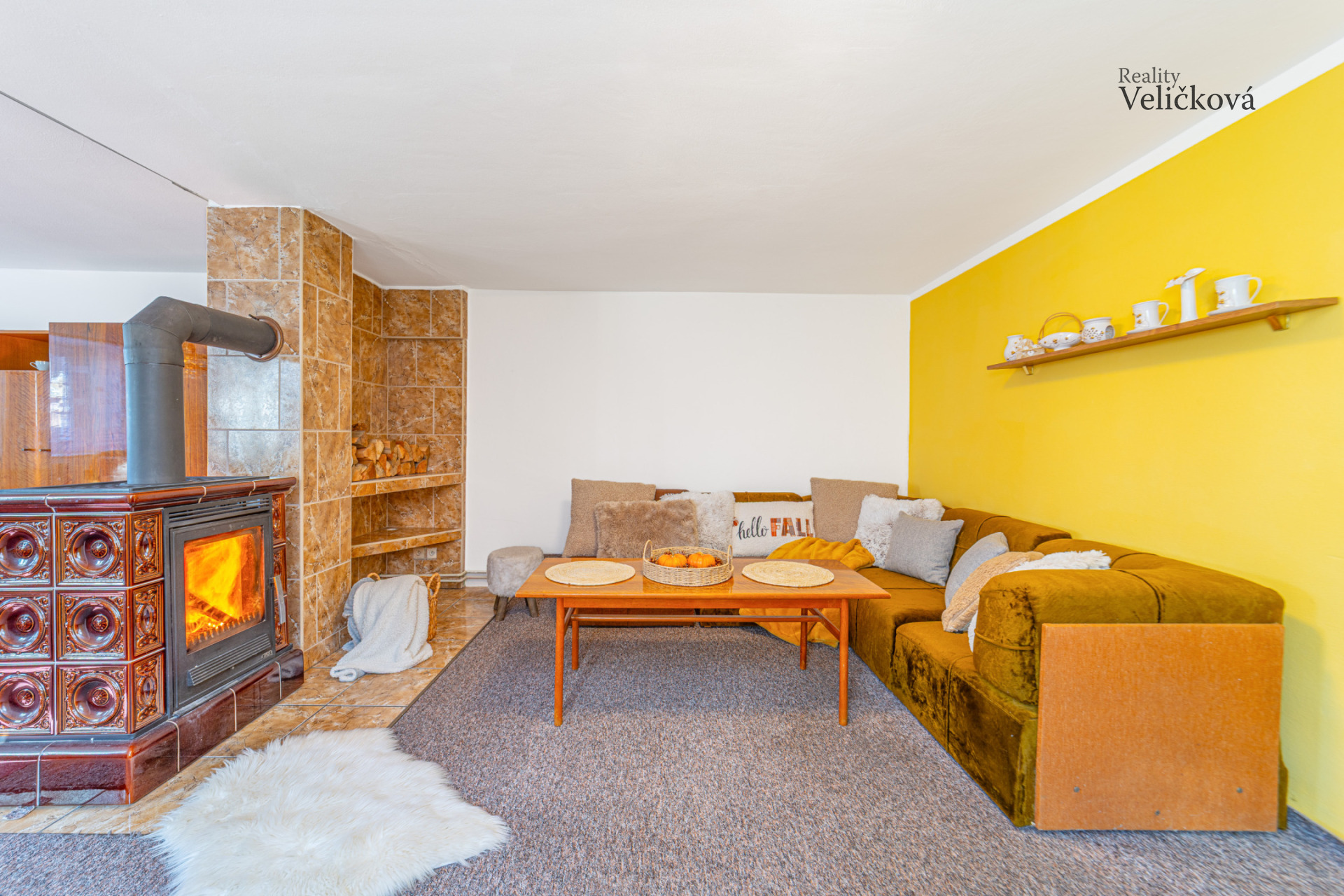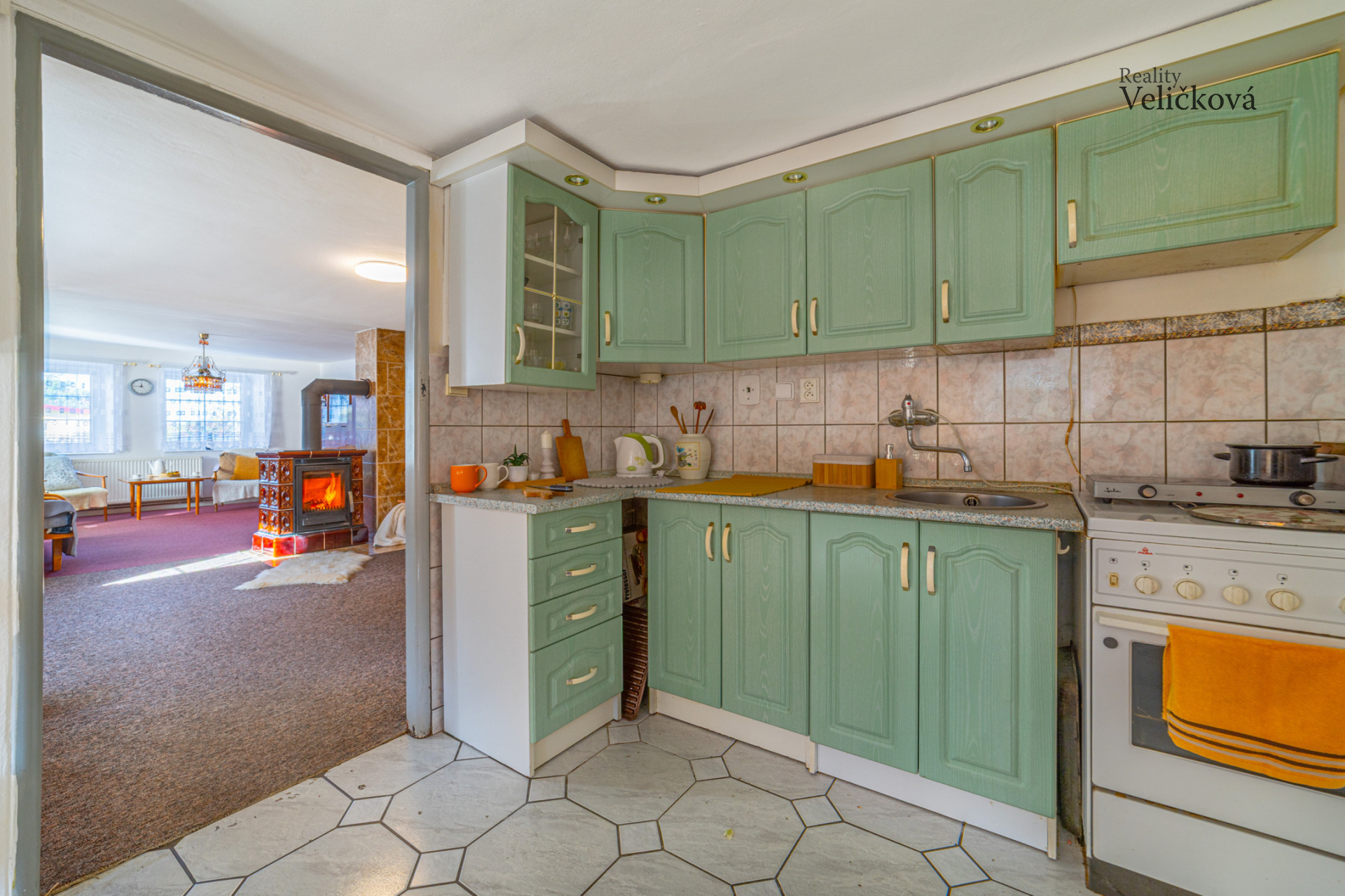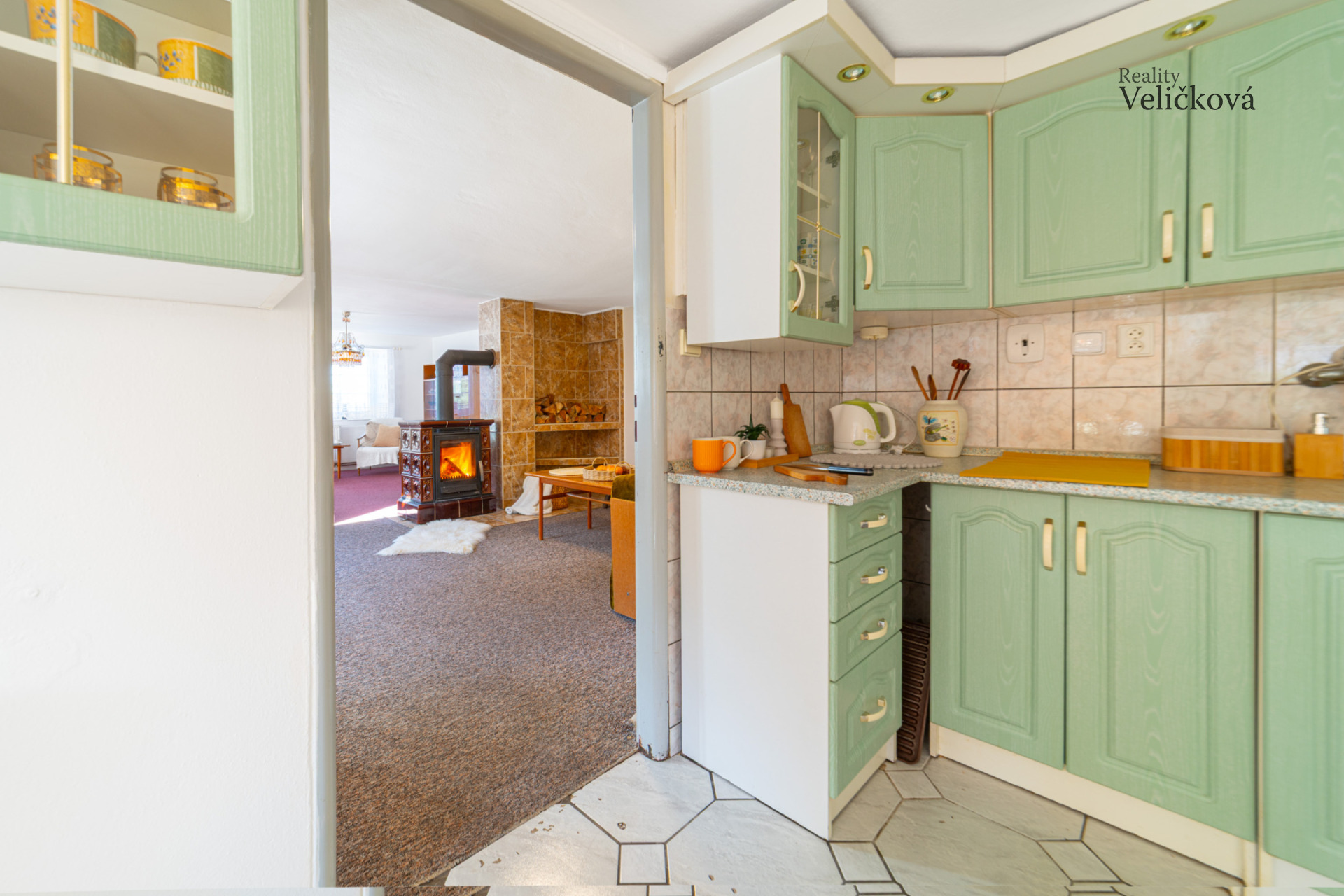 Po vstupu do domu Vás přivítá praktická chodba, ze které se vstupuje do prostorné kuchyně s jídelním koutem, ložnice a obývacího pokoje, jehož dominantou jsou krbová kamna, která vytvářejí útulnou atmosféru. Dále se zde nachází koupelna s vanou a toaletou a dále další obytný pokoj. Díky orientaci obývacího pokoje a kuchyně na jih je interiér příjemně prosvětlený, ostatní místnosti jsou situovány na západ.