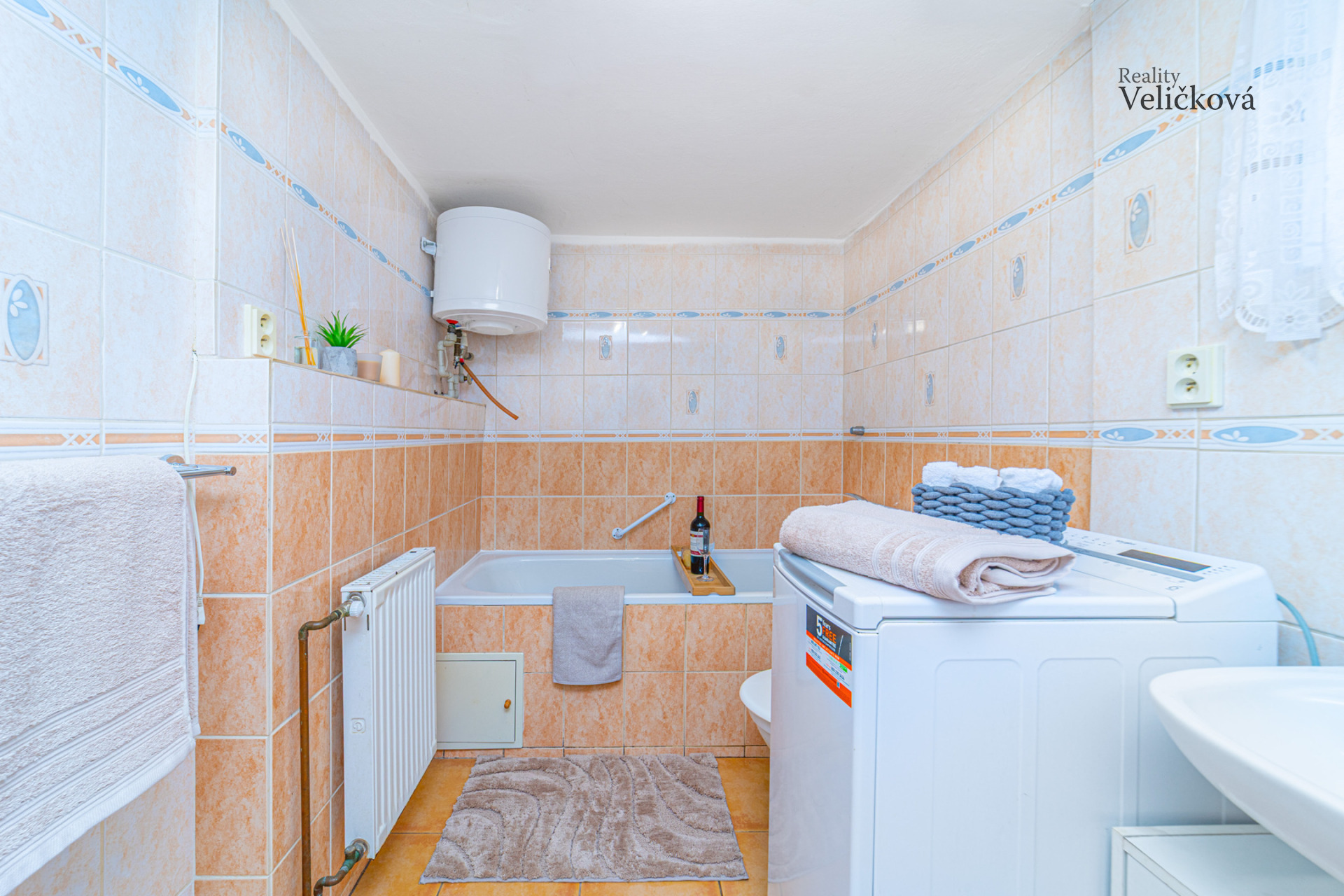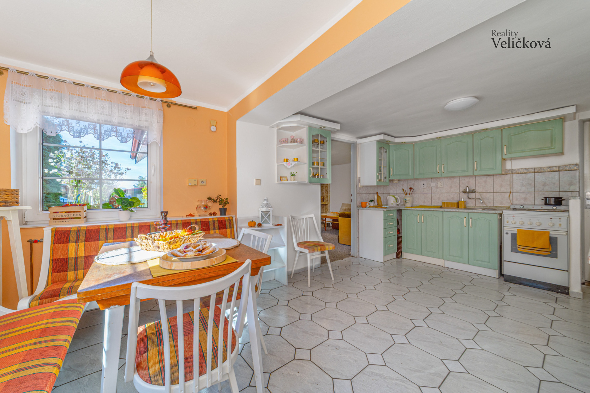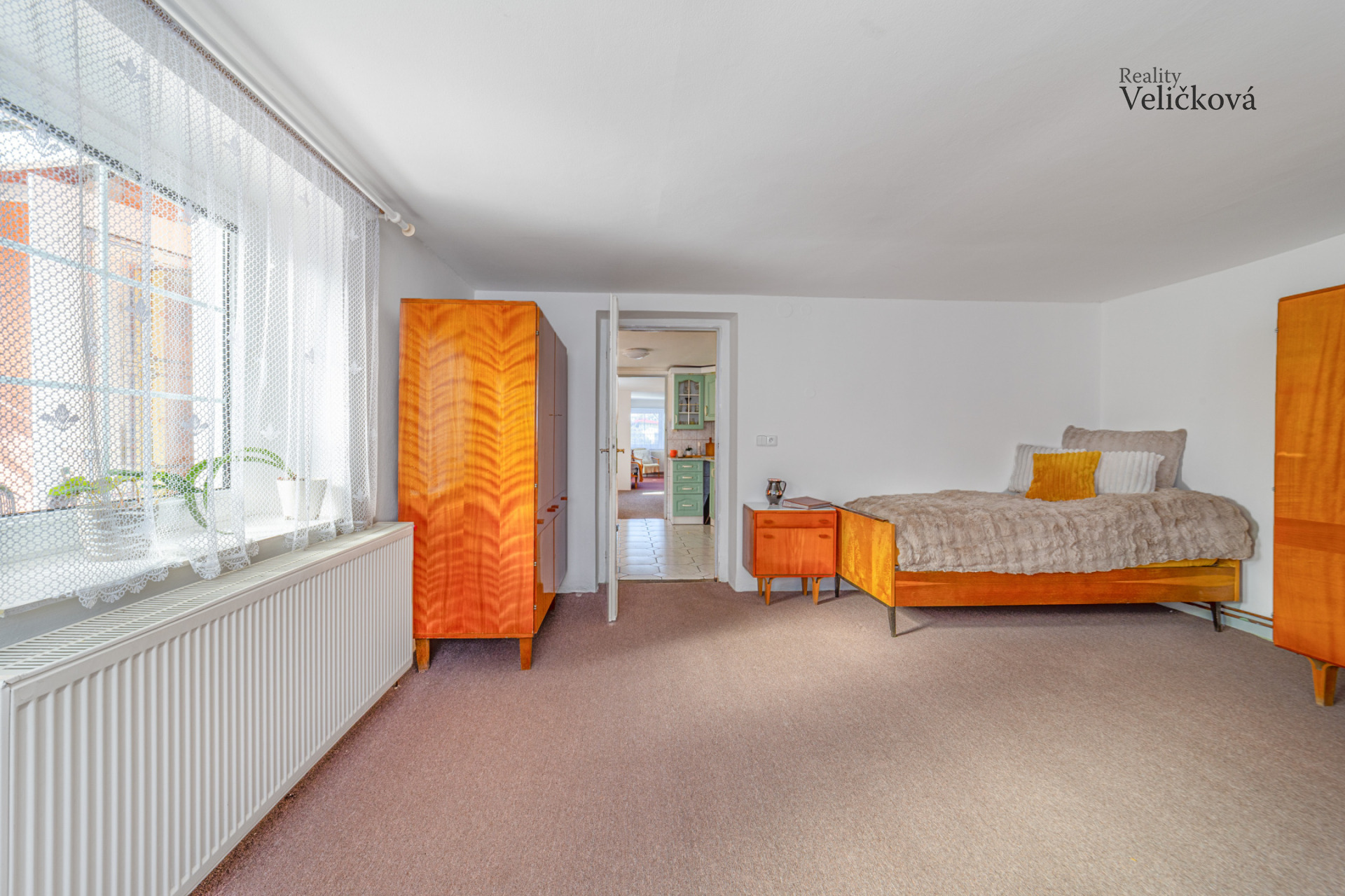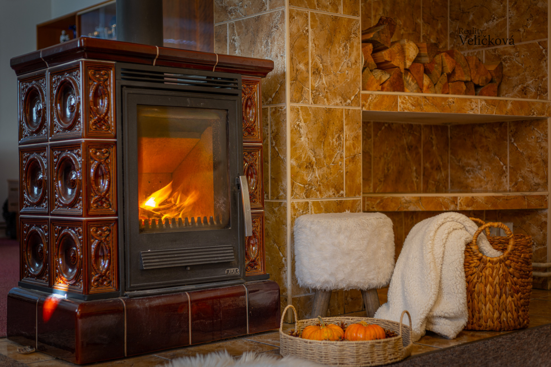 Po vstupu do domu Vás přivítá praktická chodba, ze které se vstupuje do prostorné kuchyně s jídelním koutem, ložnice a obývacího pokoje, jehož dominantou jsou krbová kamna, která vytvářejí útulnou atmosféru. Dále se zde nachází koupelna s vanou a toaletou a dále další obytný pokoj. Díky orientaci obývacího pokoje a kuchyně na jih je interiér příjemně prosvětlený, ostatní místnosti jsou situovány na západ.
