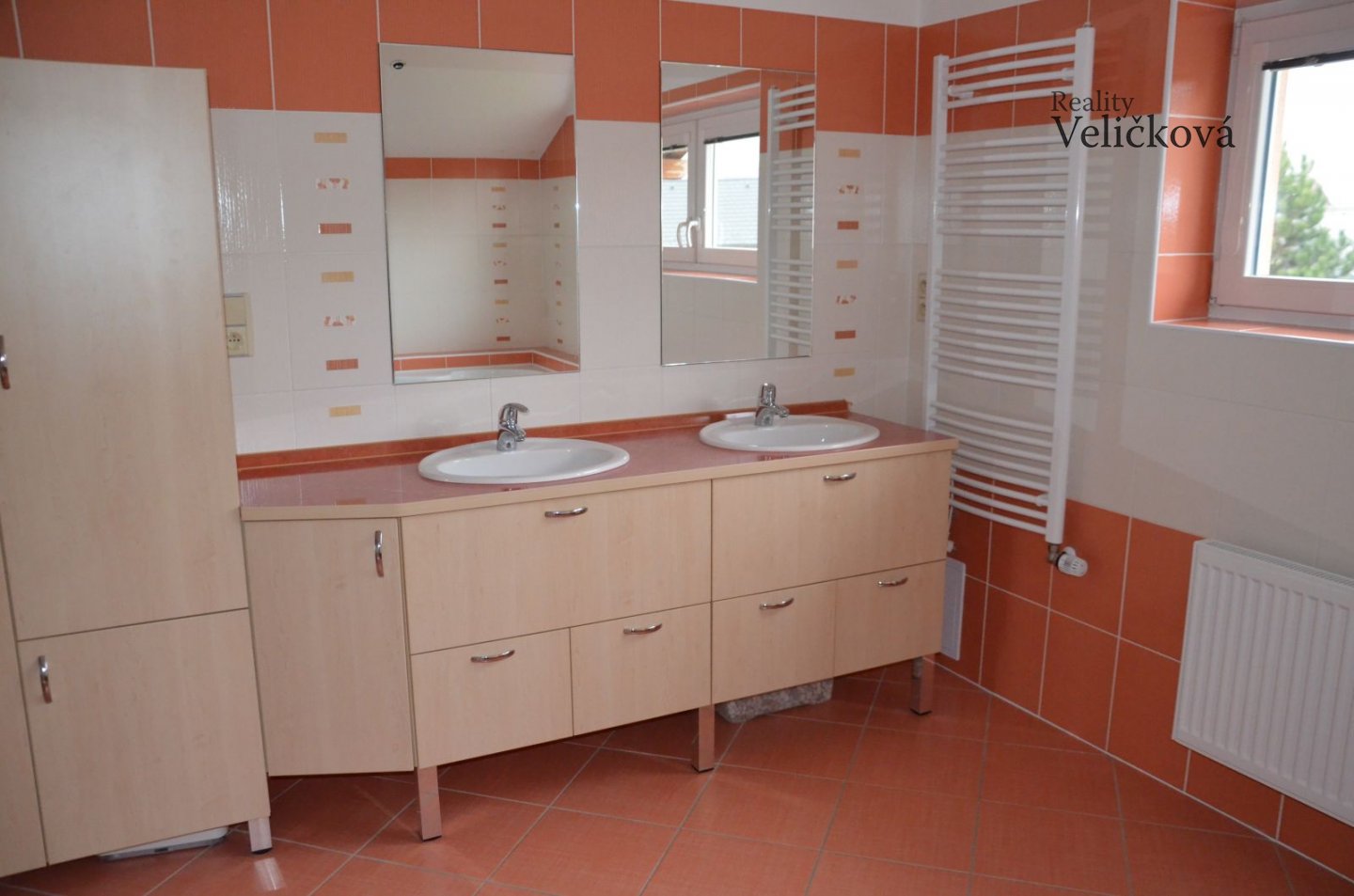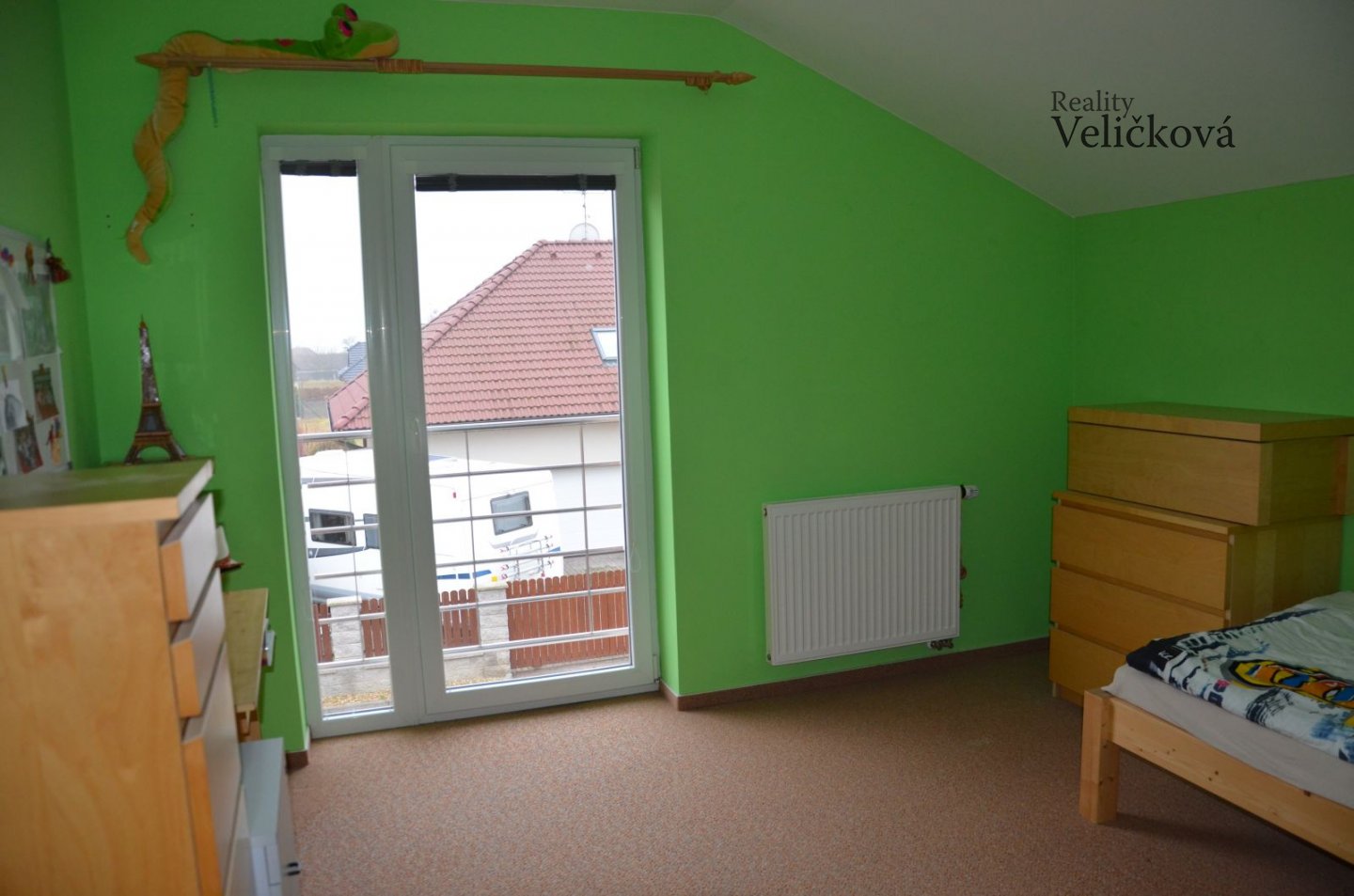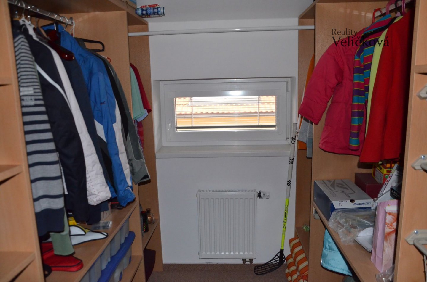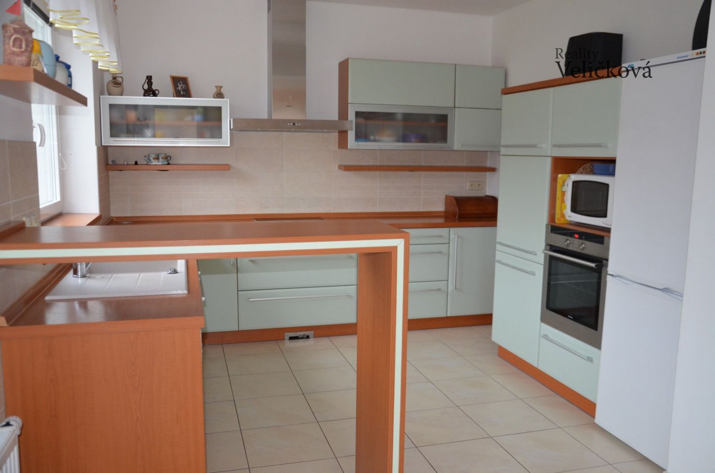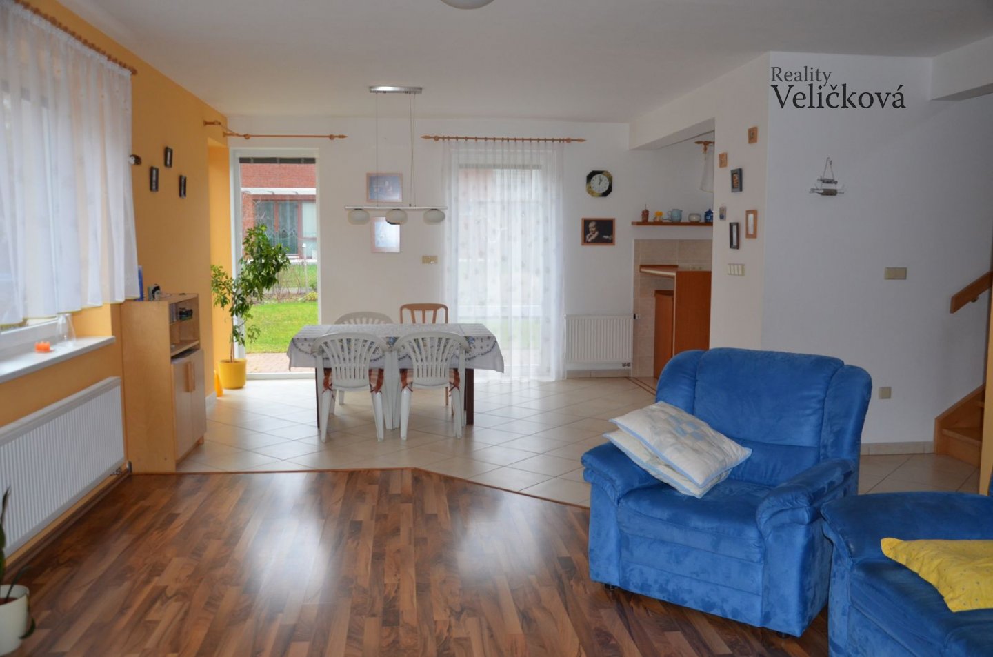 Dispozice: vstupní chodba, WC, kuchyň s jídelnou a obývacím pokojem, v patře, 3 pokoje, šatna, dále garáž a sklad se vstupem zvenku.