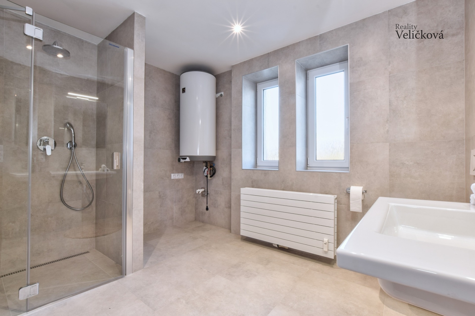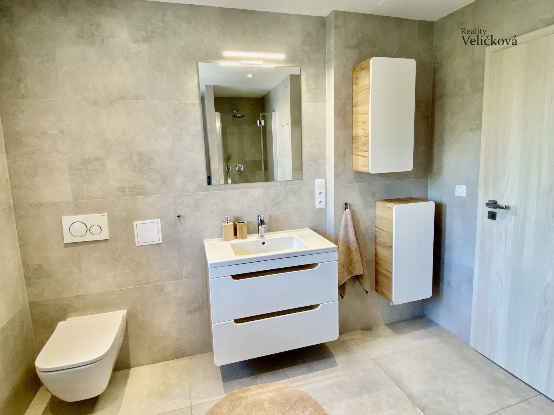 - koupelna se sprchovým koutem a toaletou vybavená moderním