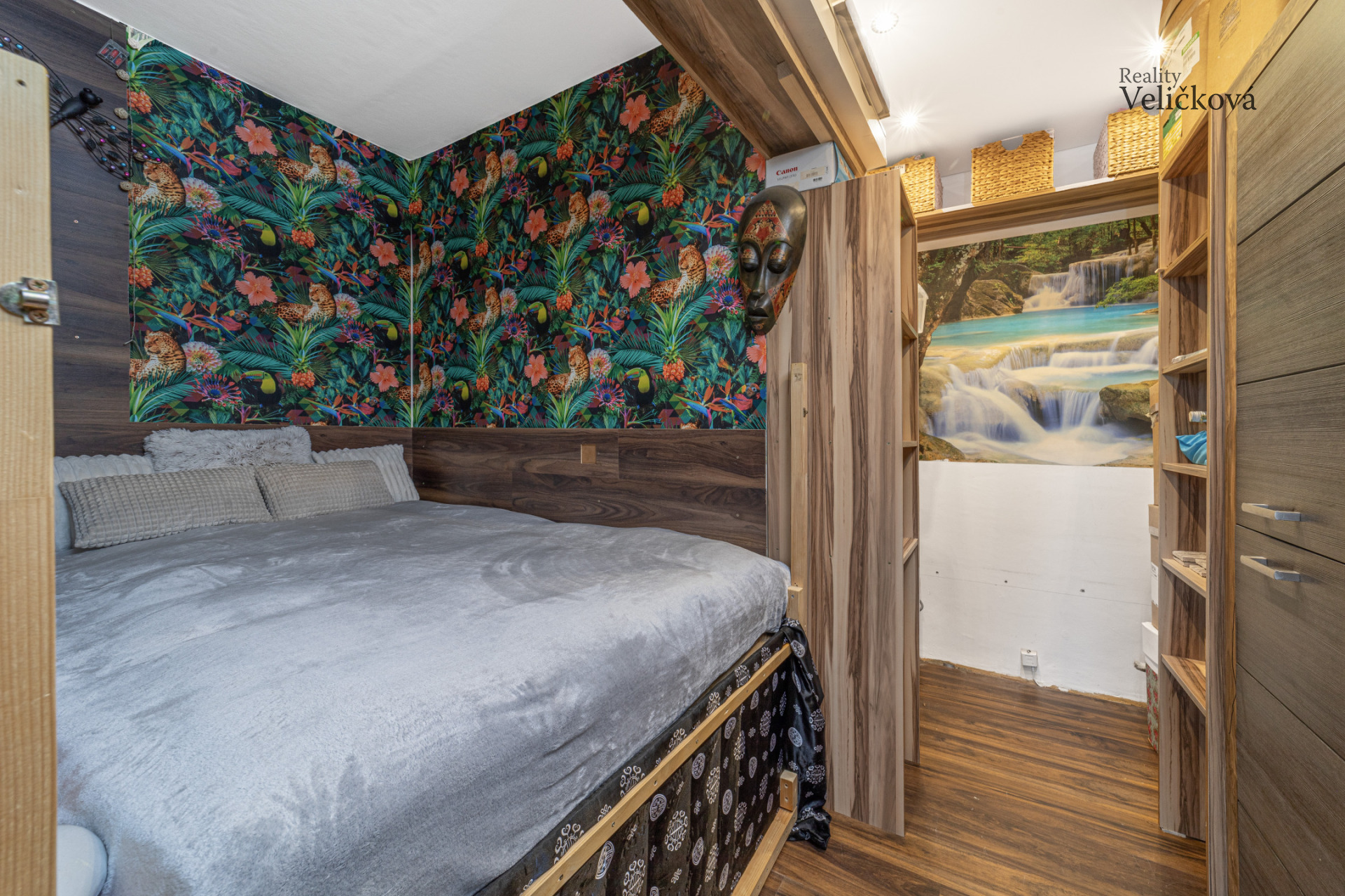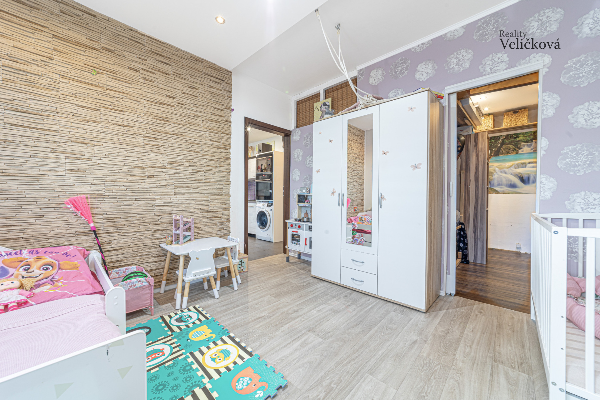 Dispozice : Vstupní chodba se skříní, koupelna je vybavená prostorným sprchovým koutem, skříňkou s umyvadlem a se zrcadlem a odděleným WC, obývací pokoj je propojen s kuchyňskou linkou, což vytváří příjemný a otevřený prostor, pračka není součástí pronájmu. Druhý pokoj je rozdělen na dvě části, na dětský pokoj a ložnici s úložnými prostory. K bytu zároveň náleží k užívání balkon v mezi patře a sklepní kóje.