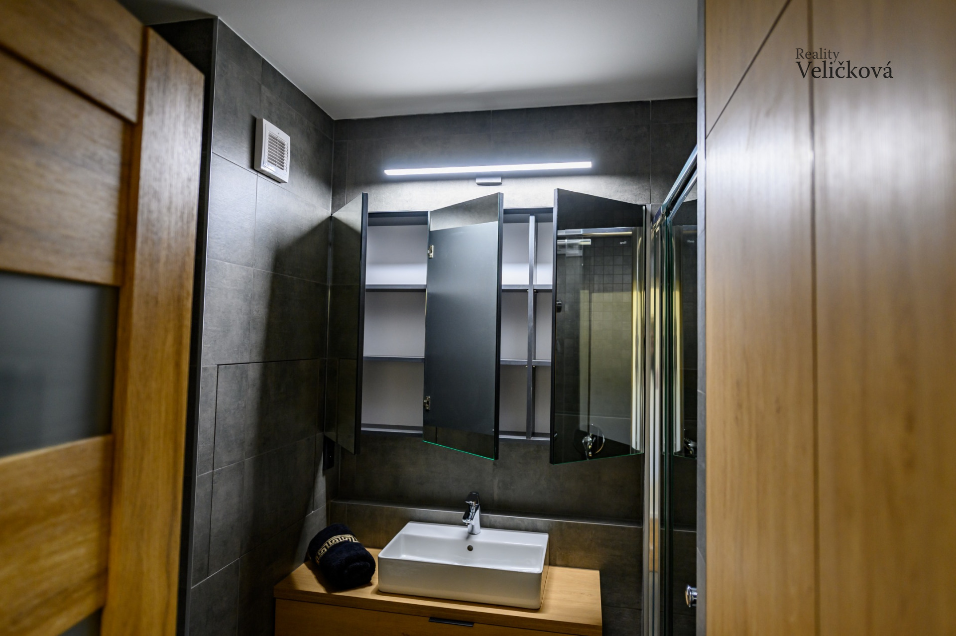 V roce 2022 byt prošel kompletní rekonstrukcí, včetně SDK stropů, elektroinstalace, včetně LED osvětlovacích prvků, vypínačů a zásuvek v provedení antracit, podlahová krytina vinyl s podložkou v provedení dub natural. Kuchyně je řešená individuálně s LED osvětlením v provedení dub dřevodekor/ šedá/ bílošedá včetně spotřebičů německé značky KLUGE, čelo postele s úložným prostorem v provedení šedá, v koupelně byly použity rektifikované obklady a dlažba v provedení kámen/ antracit, závěsné WC a sanita německé značky JUNGBORN, skleněný sprchový kout, pákové baterie německé značky GROHE, vestavěné skříňky se zrcadlovými dveřmi včetně LED osvětlení, vestavěné dveře, skříně pro pračku se sušičkou v provedení dřevodekor, byly vyměněny vstupní bezpečnostní dveře za nové v provedení antracit, dveře jsou obložkové, prosklené v provedení dřevodekor. Okna jsou plastová se žaluziemi, lodžie je zasklená.