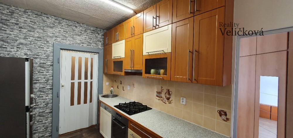 Dispozice: Předsíň s vestavěnou šatní skříní, kde je umístěna také pračka, koupelna s vanou a toaletou, kuchyňská linka včetně spotřebičů (lednice, myčka, plynový sporák s elektrickou troubou), jídelní stůl se židlemi, obytný pokoj s výhledem do vnitrobloku, obývací pokoj, sklep. V pokojích je plovoucí podlaha a dlažba. Ve vnitrobloku domu možnost využívání oploceného dvoru.