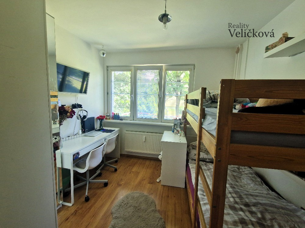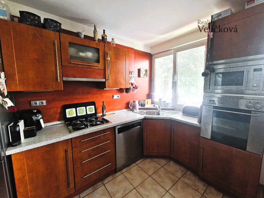 Bytová jednotka je částečně vybavena a nabízí prostornou dispozici vhodnou pro pohodlné bydlení. Tvoří ji světle koncipovaná kuchyně s kuchyňskou linkou a obývací část s dostatečně velkými okny, které zajišťují dostatek přirozeného světla. Dva oddělené pokoje poskytují soukromí a jsou vhodné pro rodinné bydlení nebo jako pracovny.
